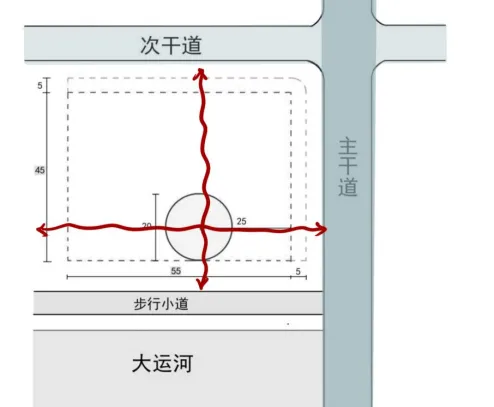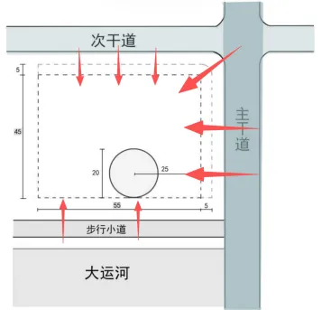 4.红线南侧临运河有一条步行小道,应与场地结合