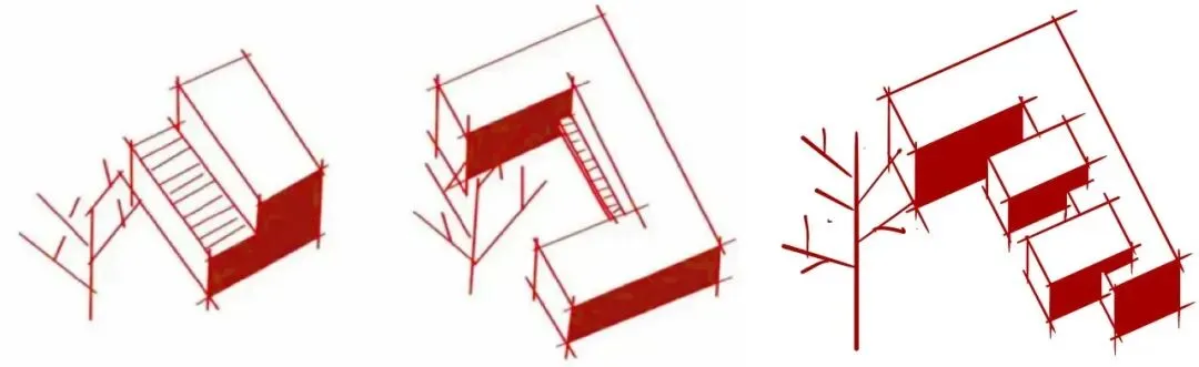 (3)大量平台的运用呼应了水景与古树,又提供了丰富的室外活动场地。