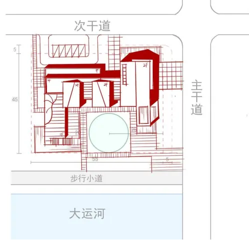 (2)场地南面临大运河,内部有一颗保留古树,南侧需要重点呼应