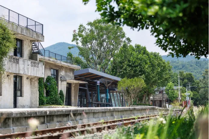 项目位于四川彭州丹景山镇的湔江小火车线性公园,是一条以火车站为核心,有机串联餐饮、展览、亲子、艺术、户外运动、遗产活化与自然景观的综合性旅游动线。
