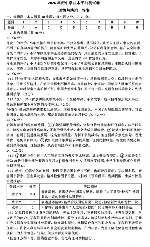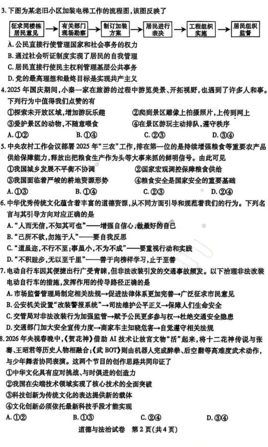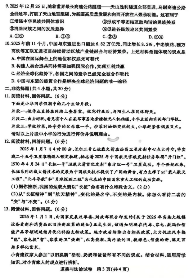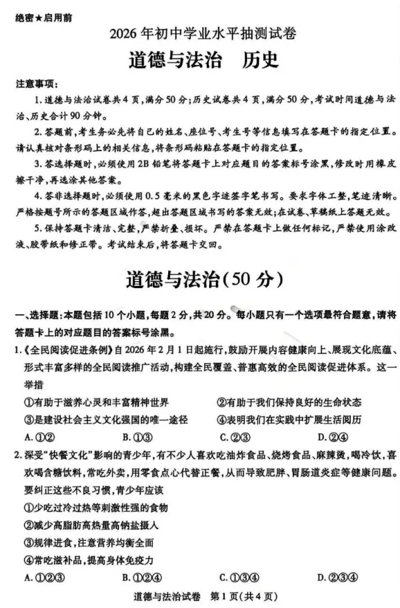 >2026年3月内蒙古地区中考模拟试卷道法、历史(含答案)