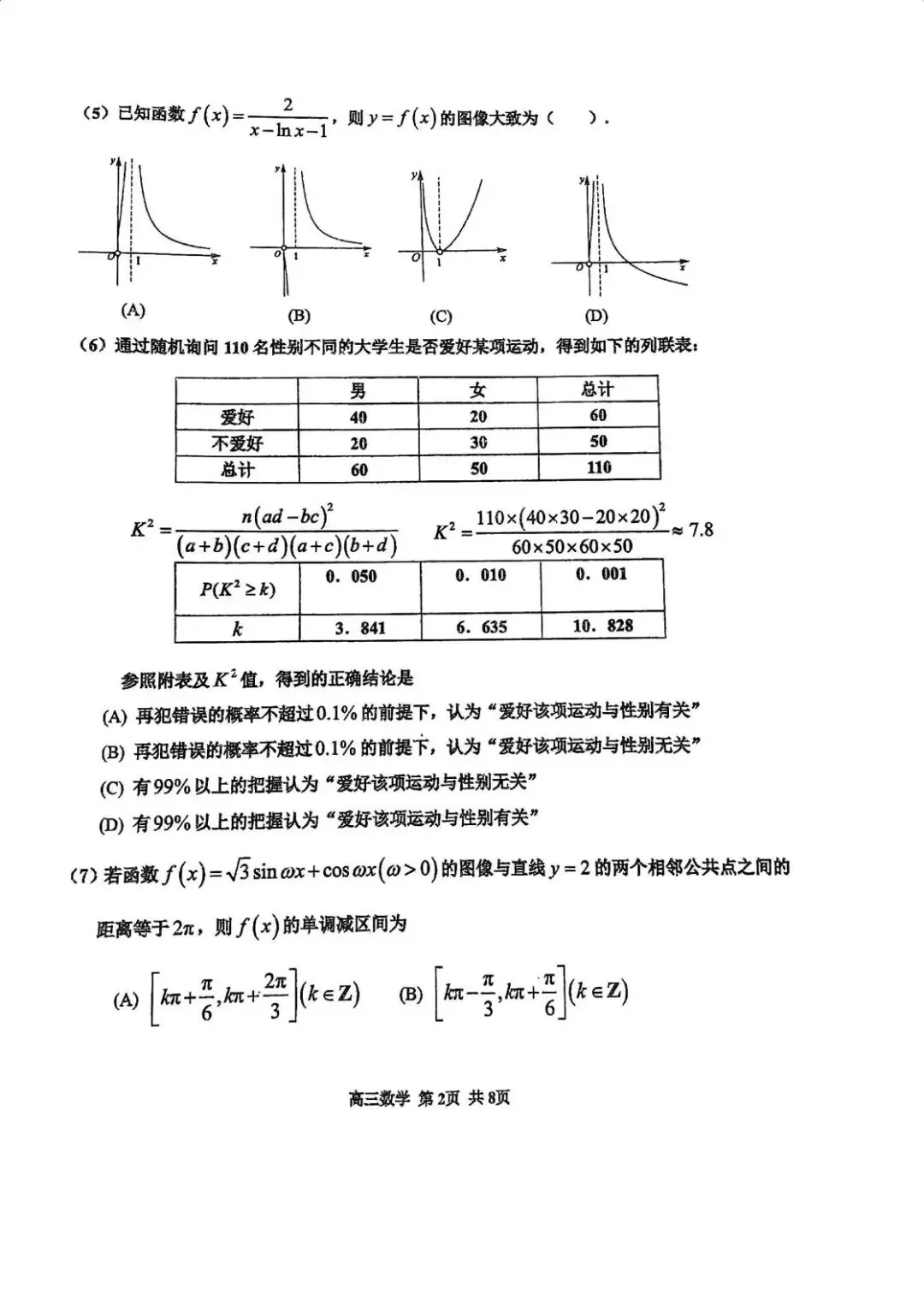 - 第(4)题结合基本不等式求最值,第(5)题函数图像识别,第(7)题三角函数图像性质,均要求学生具备扎实的运算能力和数形结合思想。