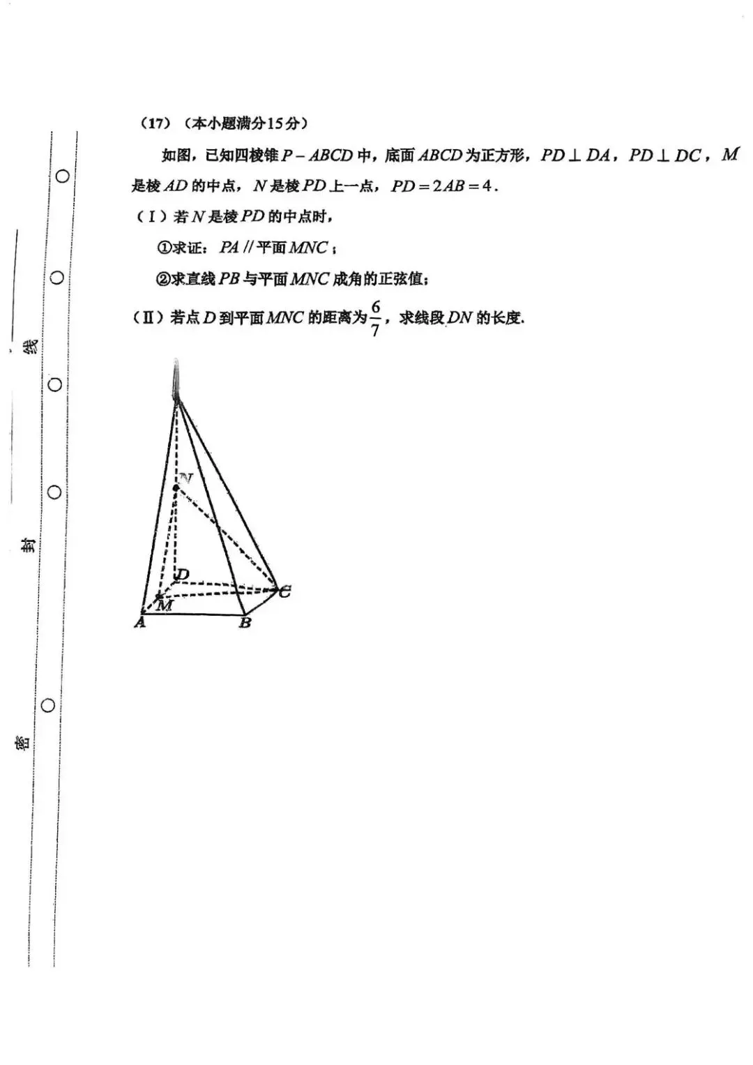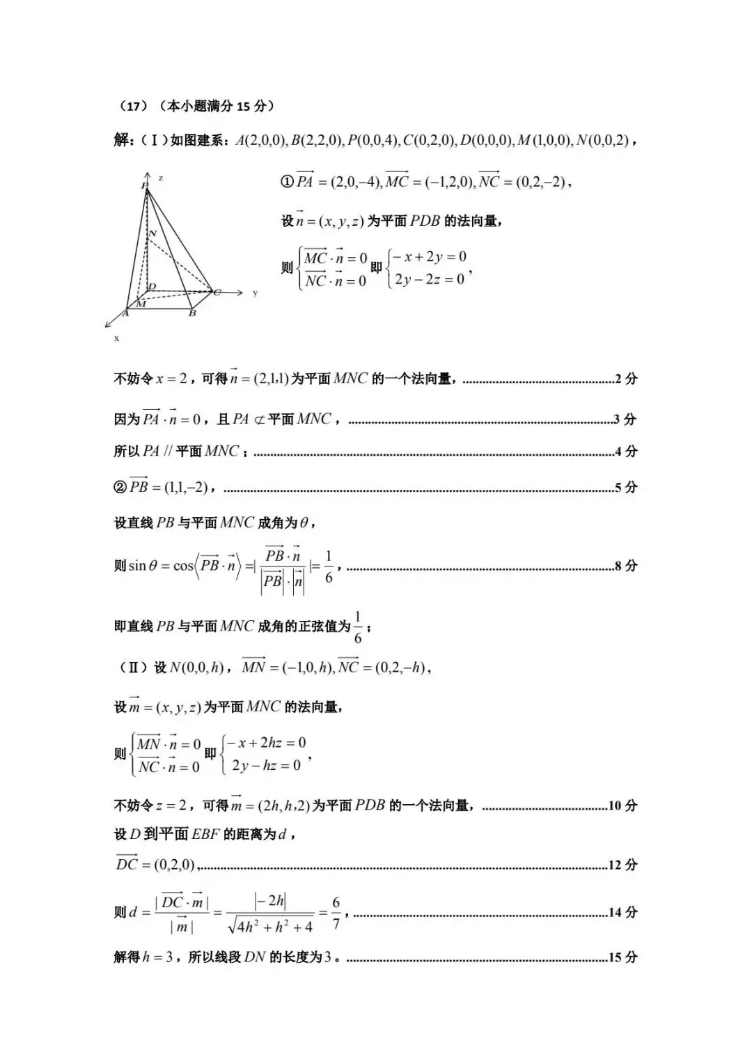 - 第(17)题(Ⅱ):不同于常规的“已知长度求距离”,此题是“已知距离反求长度(DN)”。这种逆向设问增加了思维难度,要求学生对点到面的距离公式及其参数含义有深刻理解。