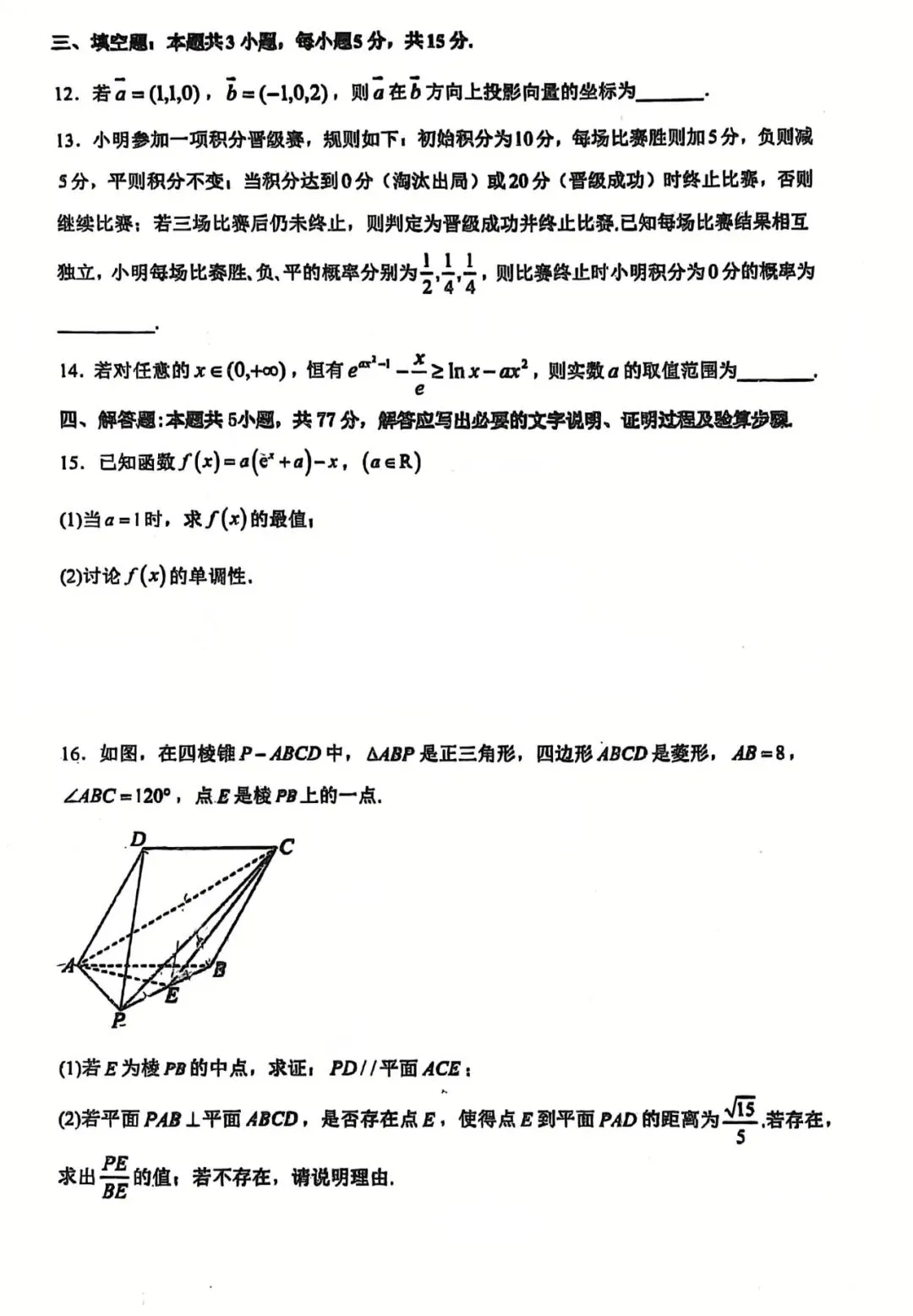 五中月考考查了空间向量、导数、计数原理与随机事件。