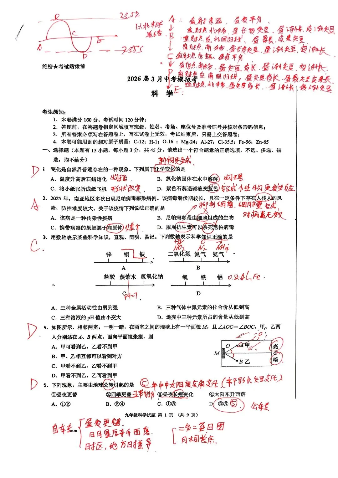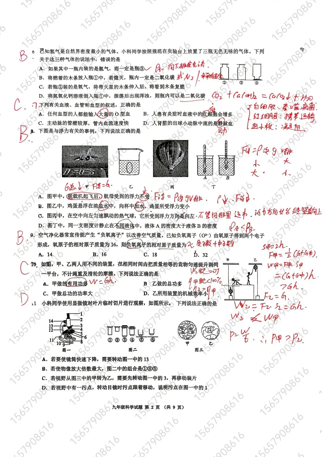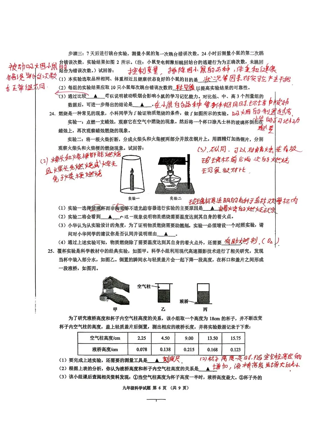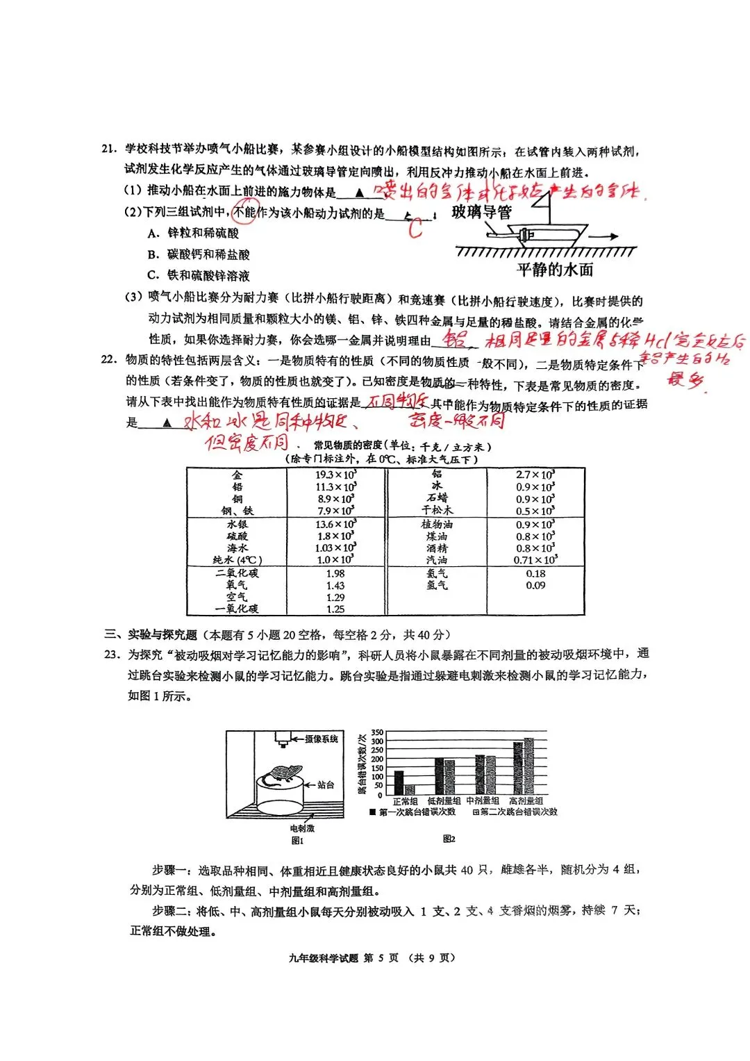 中考科学一模杭州新碶统考试卷手写答案分析