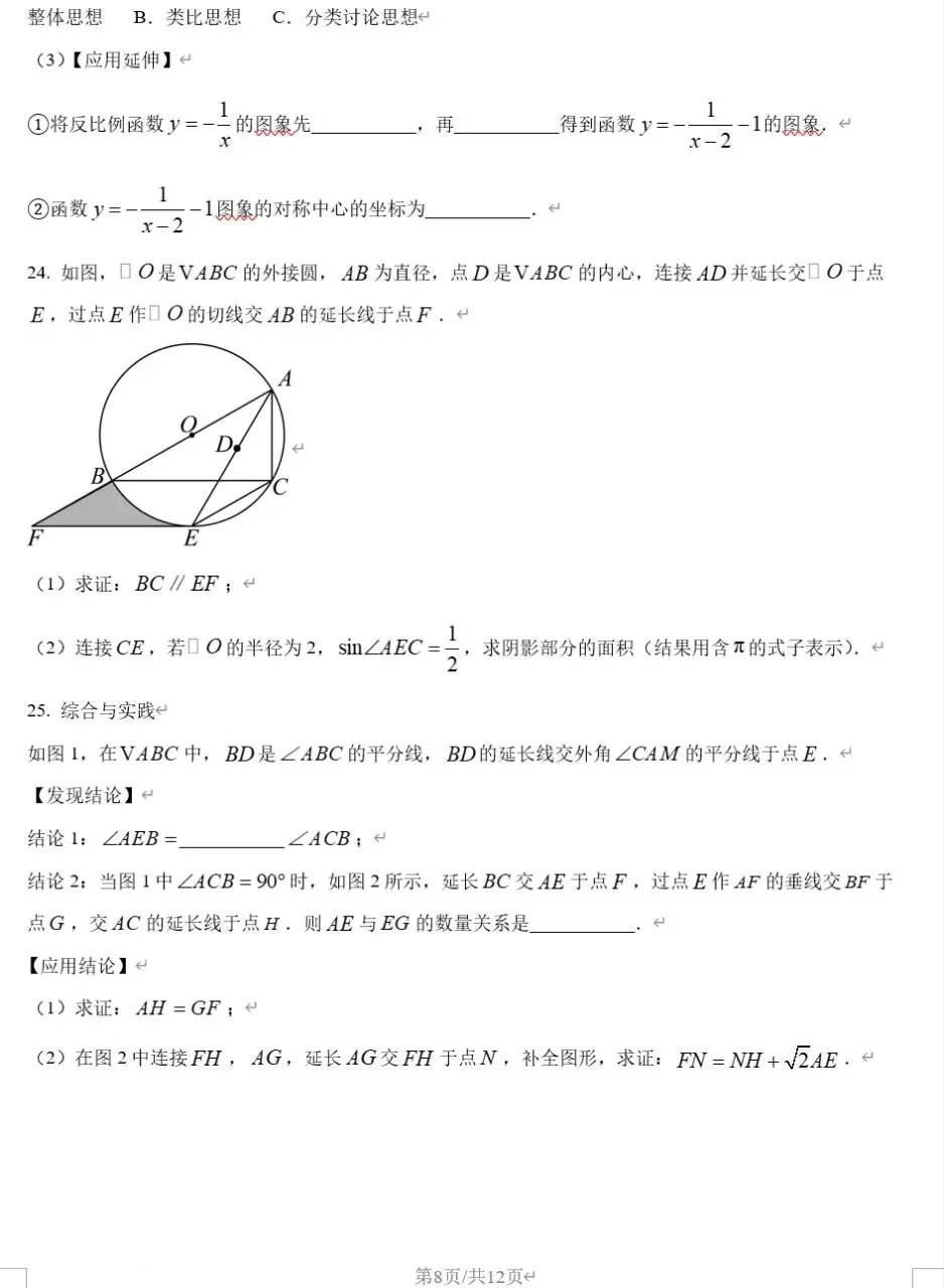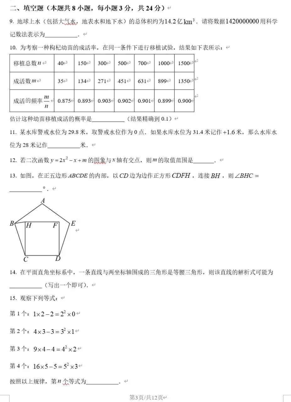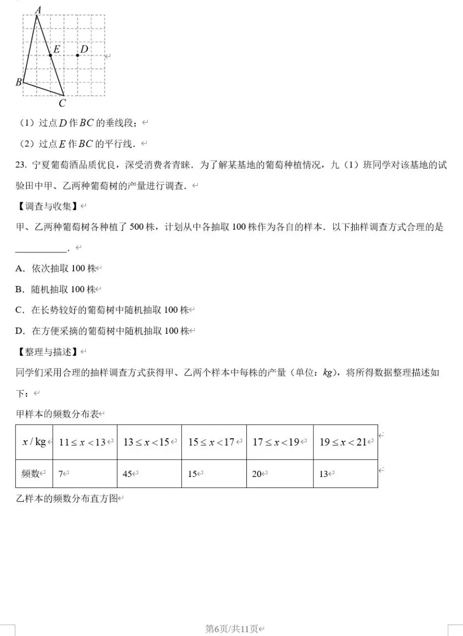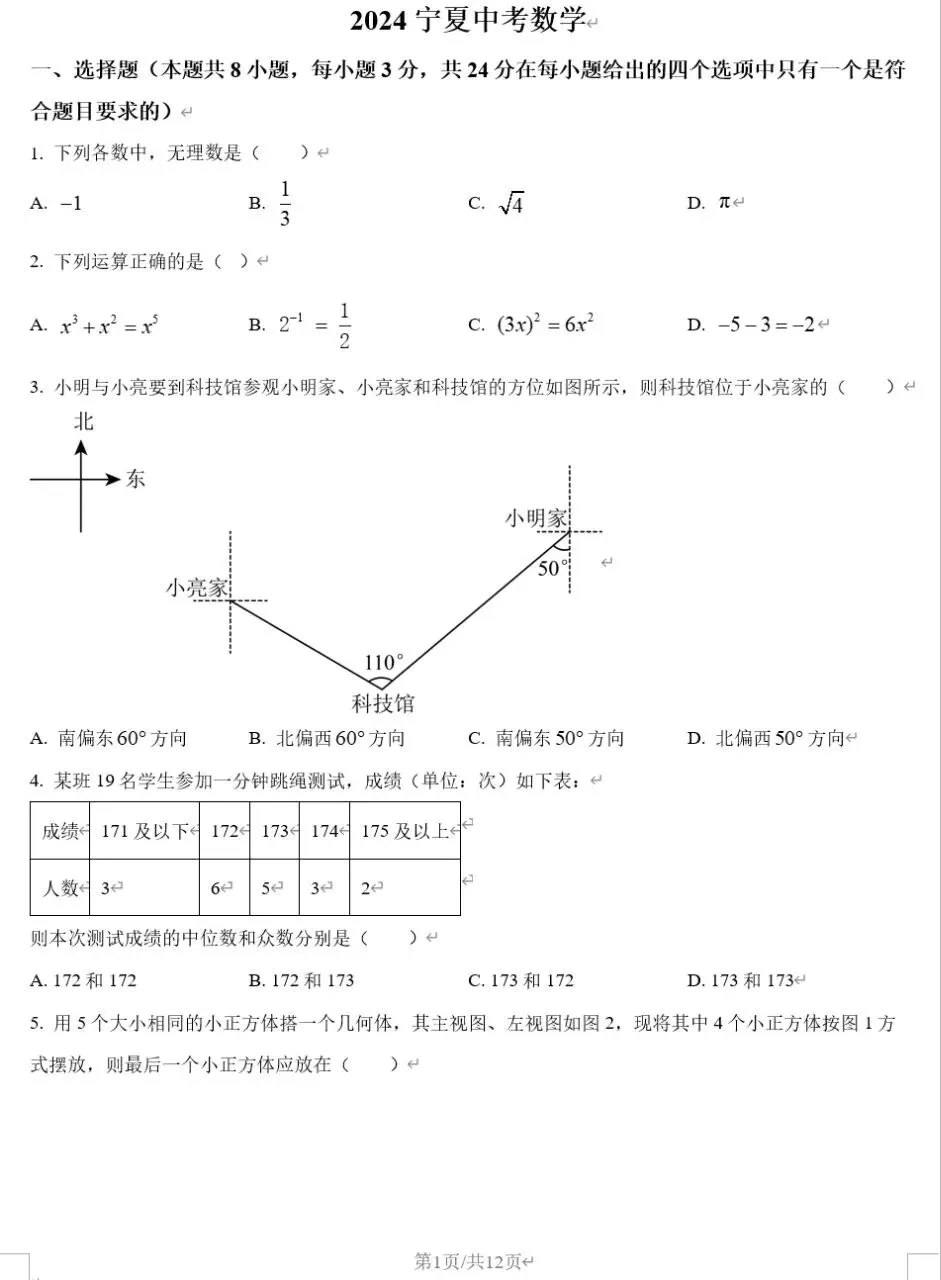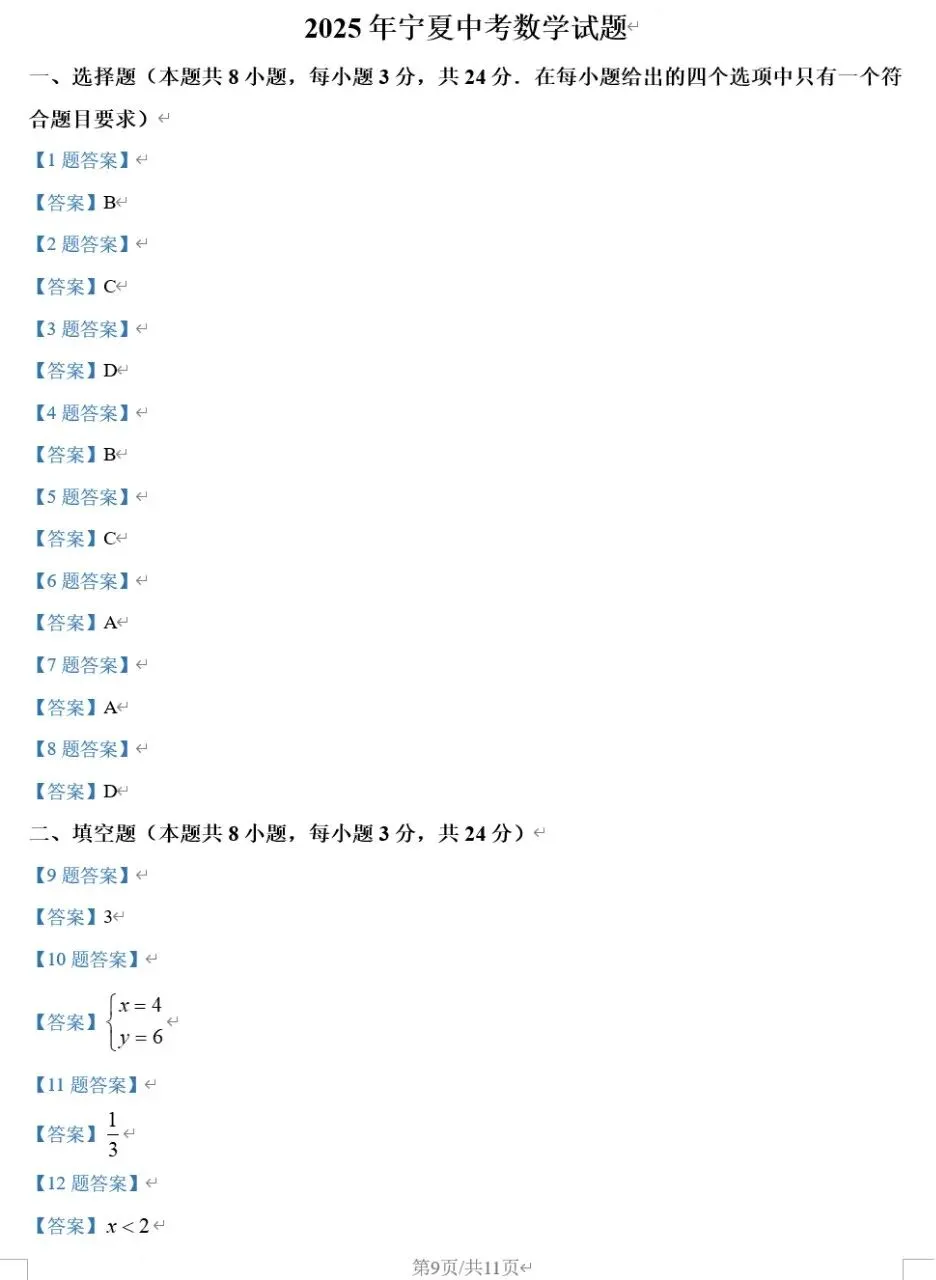 >近三年宁夏中考数学真题试卷(2023~2025)(含参考答案)