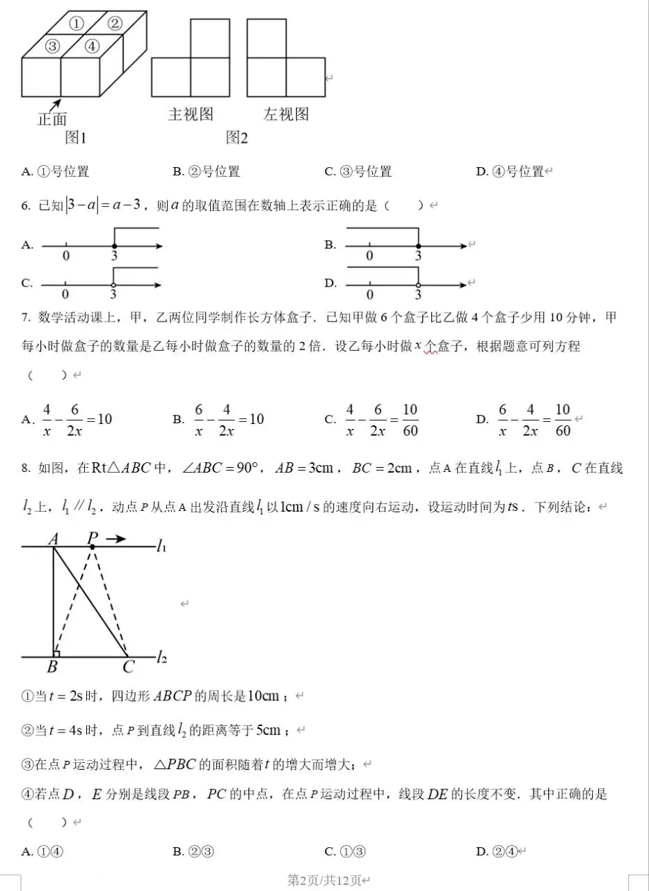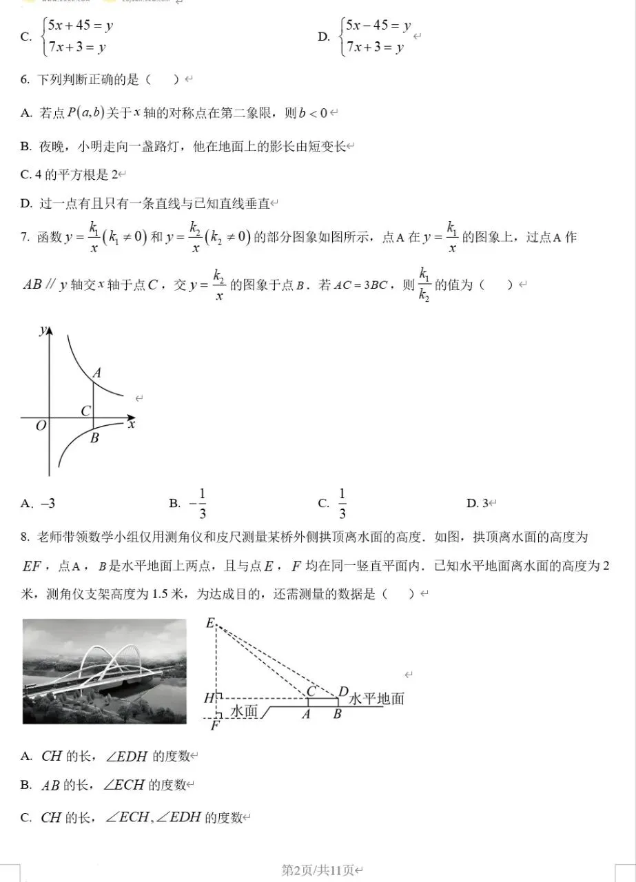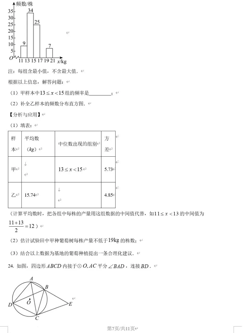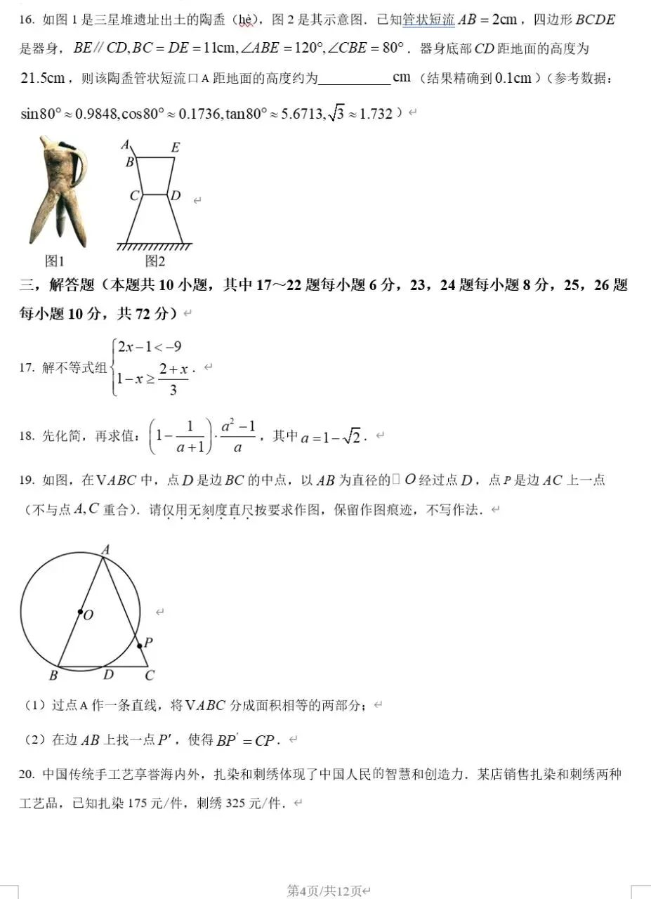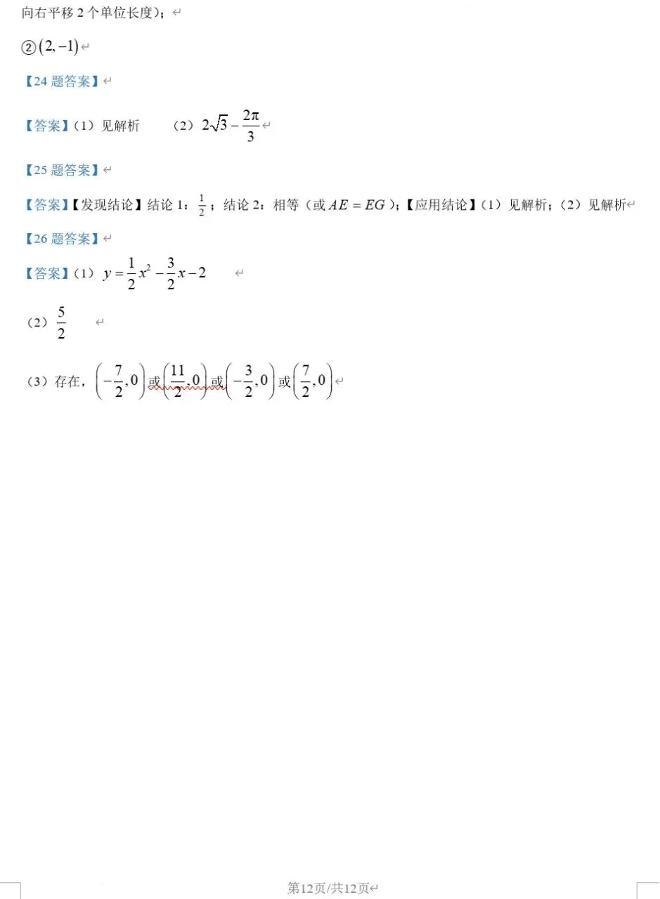 >近三年宁夏中考数学真题试卷(2023~2025)(含参考答案)