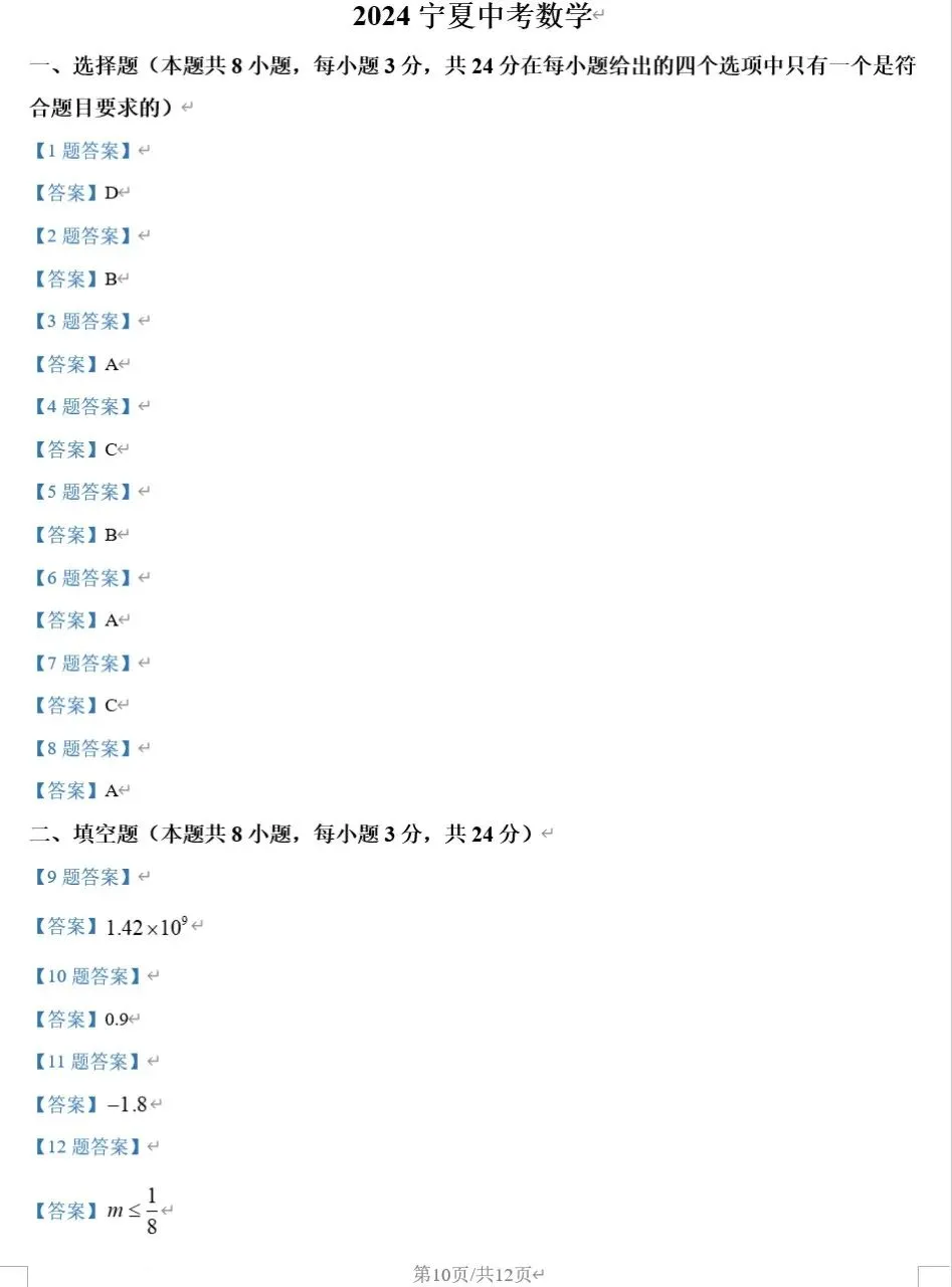近三年宁夏中考数学真题试卷(2023~2025)(含参考答案)