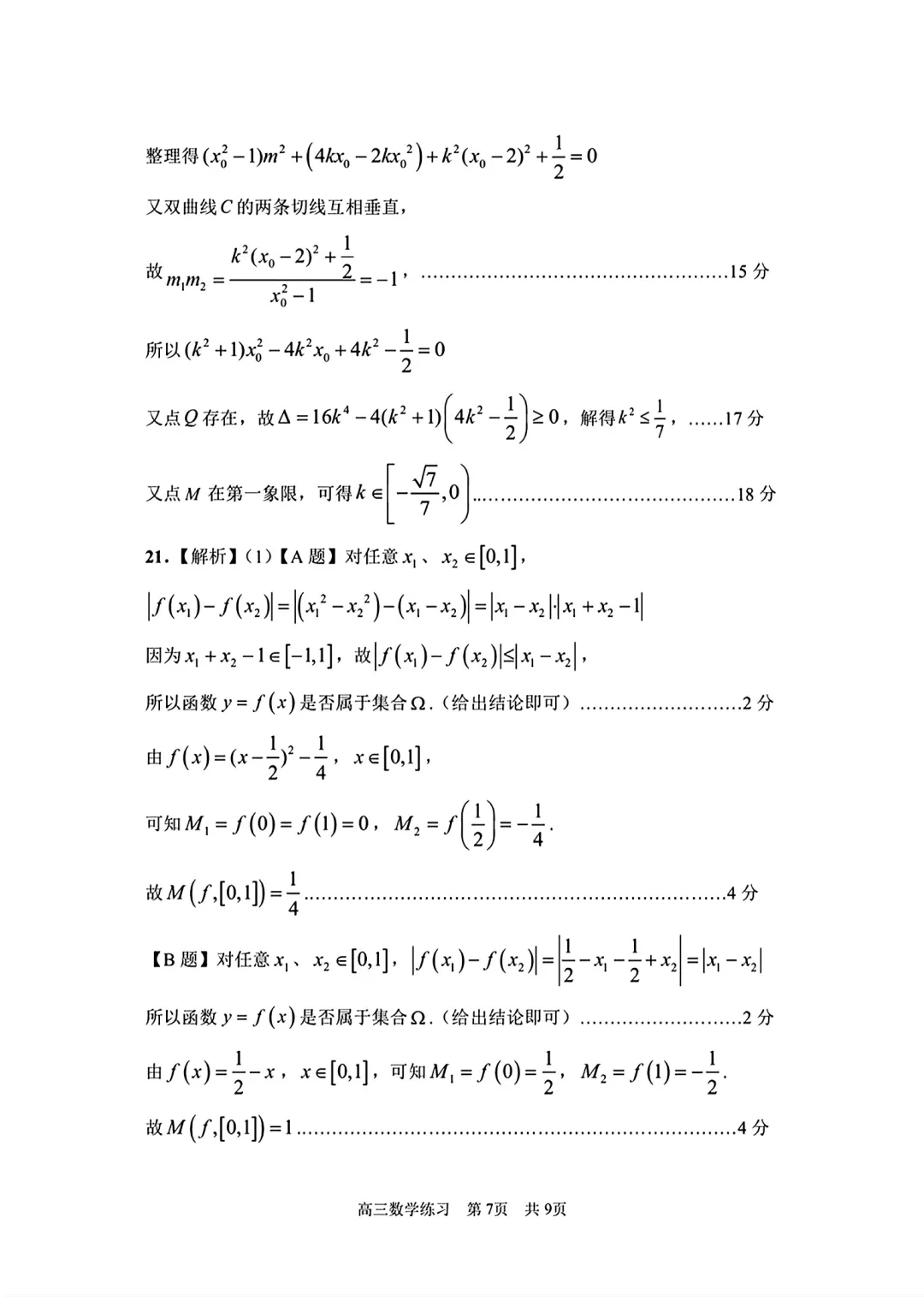 上海市浦东新区2025学年高三二模数学试卷及标准答案(2026.03)