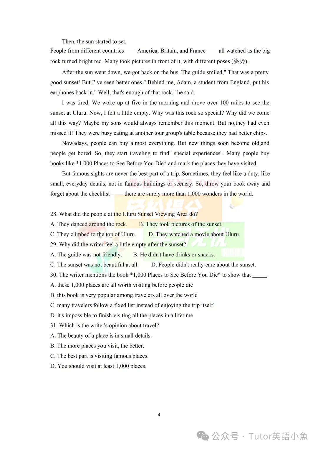 2026南京市金陵中学中考零模英语试卷+答案(2026.3)