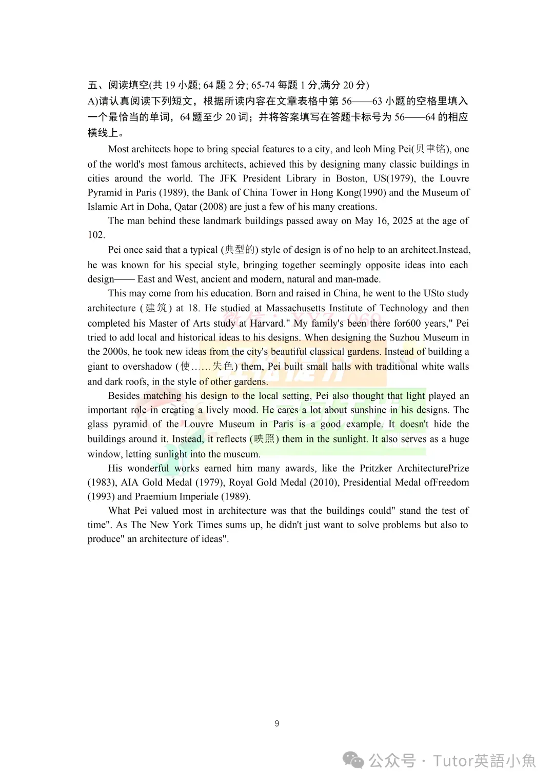 >2026南京市金陵中学中考零模英语试卷+答案(2026.3)