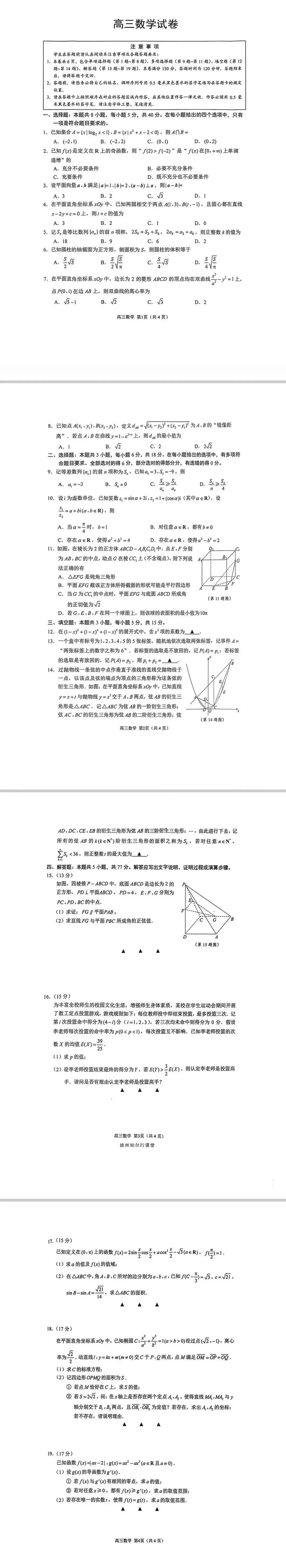 这几天大家有向颜老师其它地方的期末试题,想练练手,给大家分享一下,高三