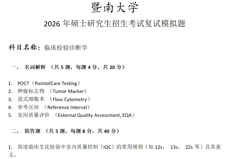 当前位置:首页>考研真题>暨南大学临床检验诊断学考研复试真题模拟