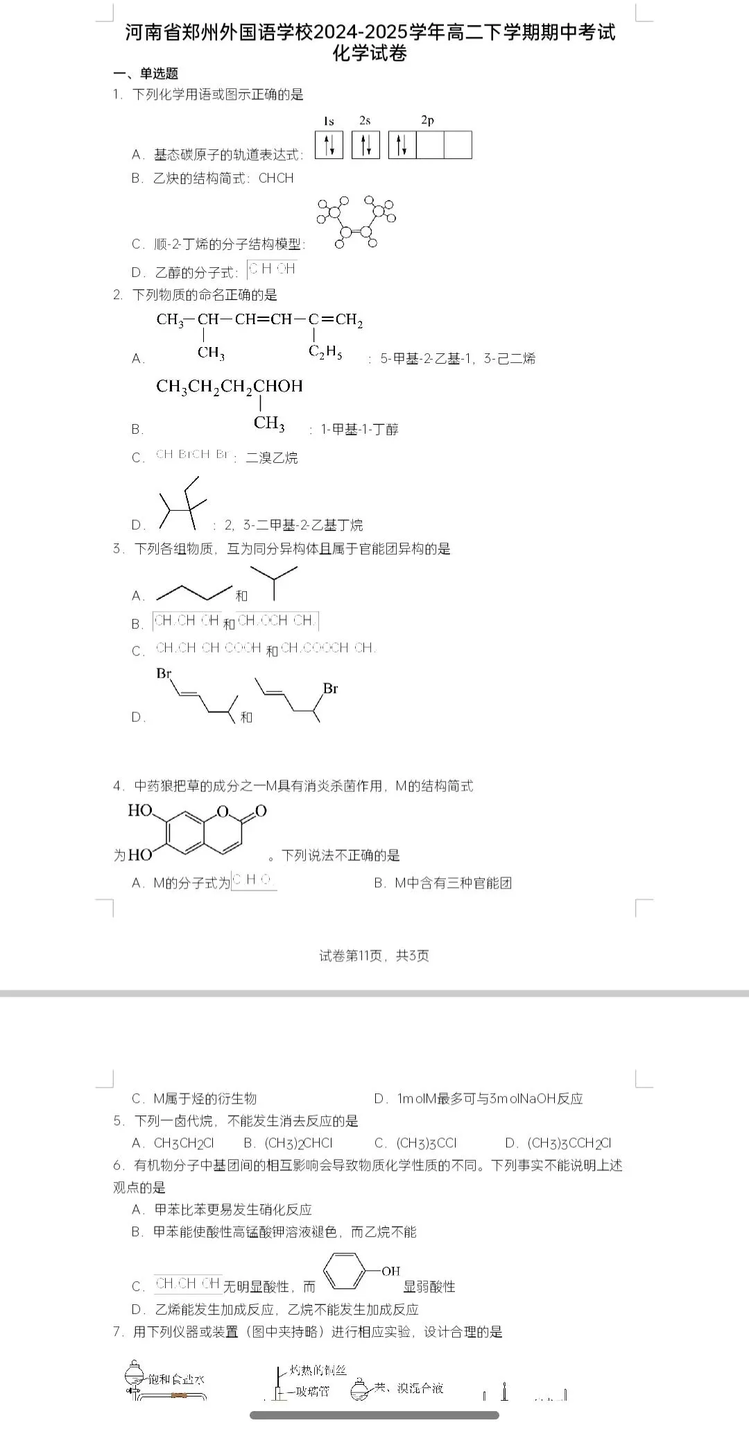 河南省郑州外国语学校2024-2025学年高二下学期期中考试化学试卷和答案.docx