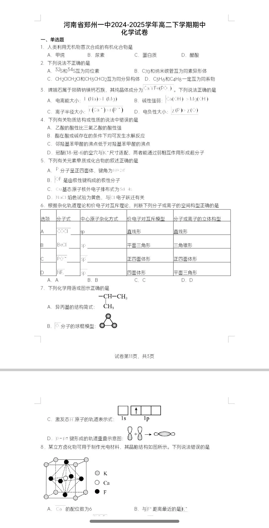 河南省郑州一中2024-2025学年高二下学期期中化学试卷和答案.docx