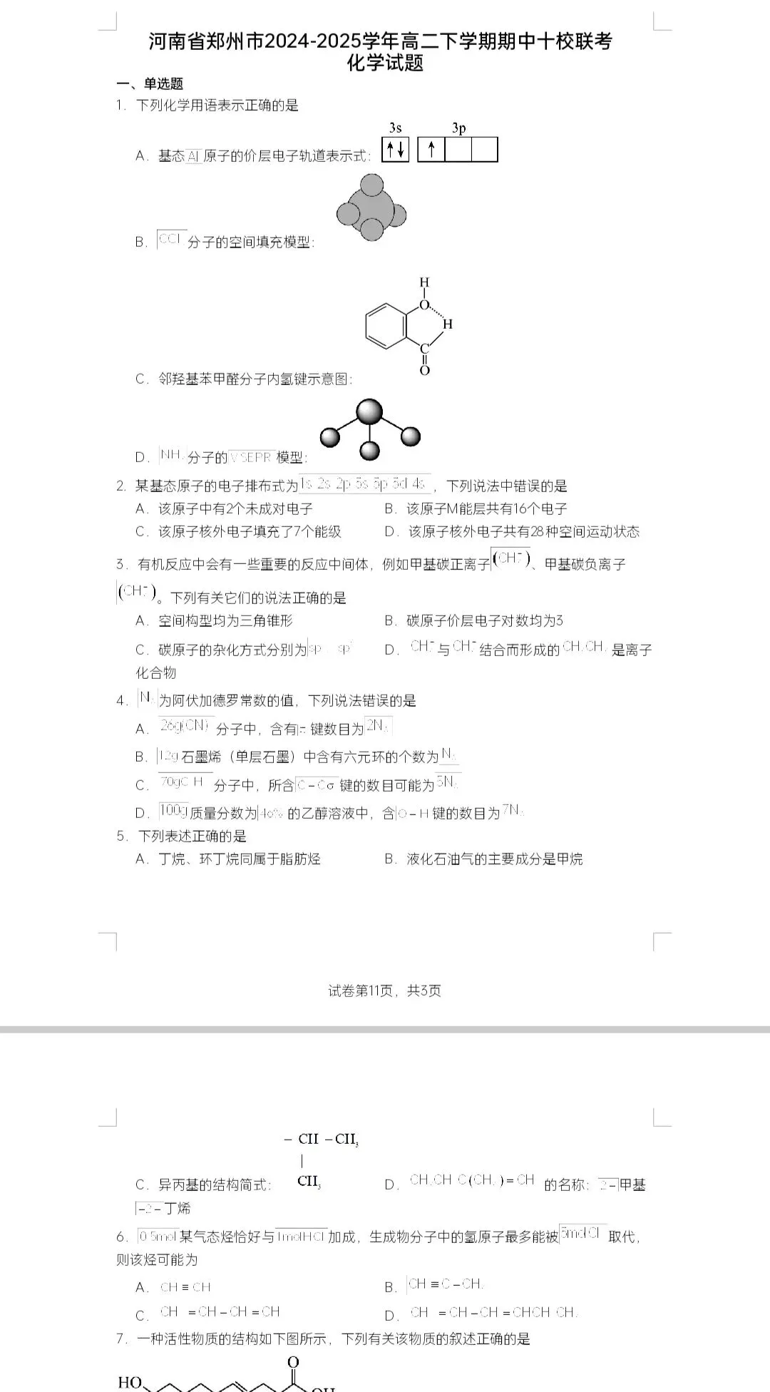 河南省平顶山市2024-2025学年高二下学期期中化学试卷和答案.docx