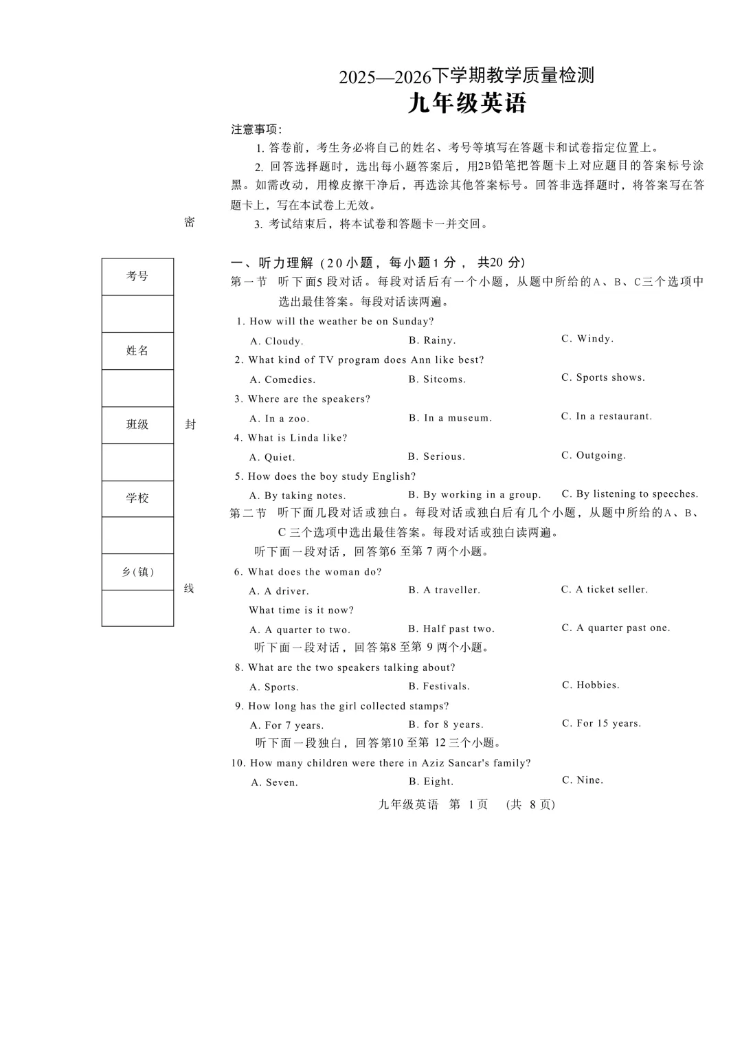 初中语文、数学、英语等各科目《同步练习+单元测试+期中试卷+期末考卷+中考真题》打包下载(2025年春)