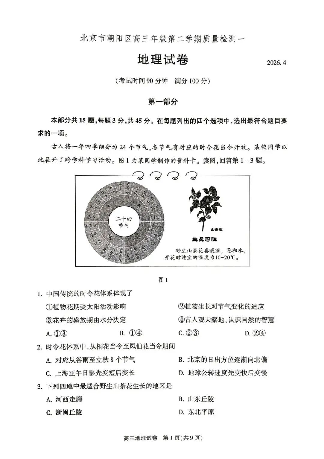 北京市朝阳区2026年高三一模地理试题试卷及答案,答案更新中,一模试卷难度如何?您考的怎么样?欢迎您评论留言,具体试卷如下: