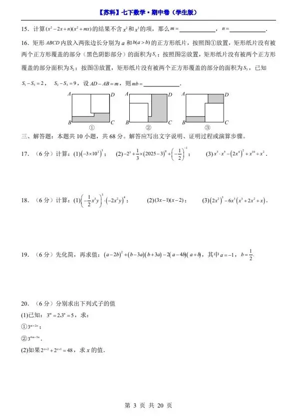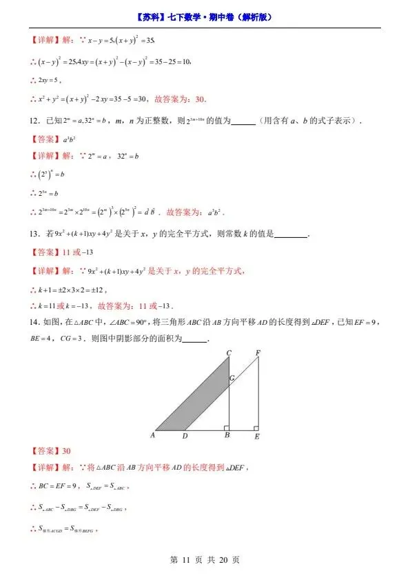 今日分享26春七年级下册数学苏科版期中试卷(含答案)完整电子版可打印!所有资料均为高清电子版,排版规整适配打印,不用费心整理,直接打印就能用。精准击破学习难点,帮孩子夯实基础、吃透考点,稳步提升学习效率!