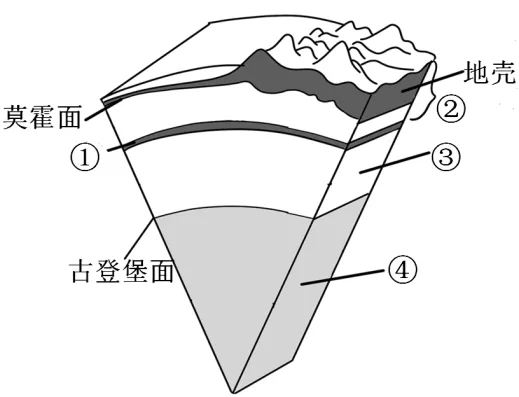 详解:岩石圈 = 地壳 + 上地幔顶部(软流层以上),对应图中②;①为软流层,③为下地幔,④为地核。