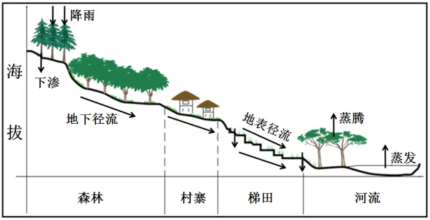 详解:森林具有涵养水源的作用,茂密的原始森林,能在雨季涵养水源,到了旱季再缓缓释放水流,确保梯田灌溉用水,A正确;“年降水不稳定,季节分配不均”说明“年降水量大”说法错误,也不是该地水源常年不枯的原因,B错误;该地纬度低,气温高,蒸发量大,C错误;地形落差大易造成水土流失,不利于水分的保存,结合材料“年降水不稳定,季节分配不均”可知D错误。故选A。