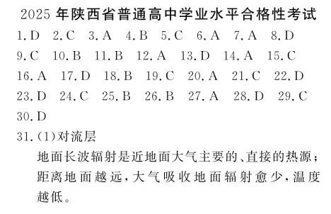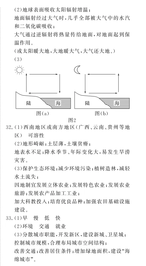31.解析:本大题以大气的垂直分层示意图和大气的受热过程示意图为材料,涉及大气的垂直分层、大气的受热过程和热力环流的应用等相关内容,考查学生掌握课本知识的能力和综合思维的地理素养。