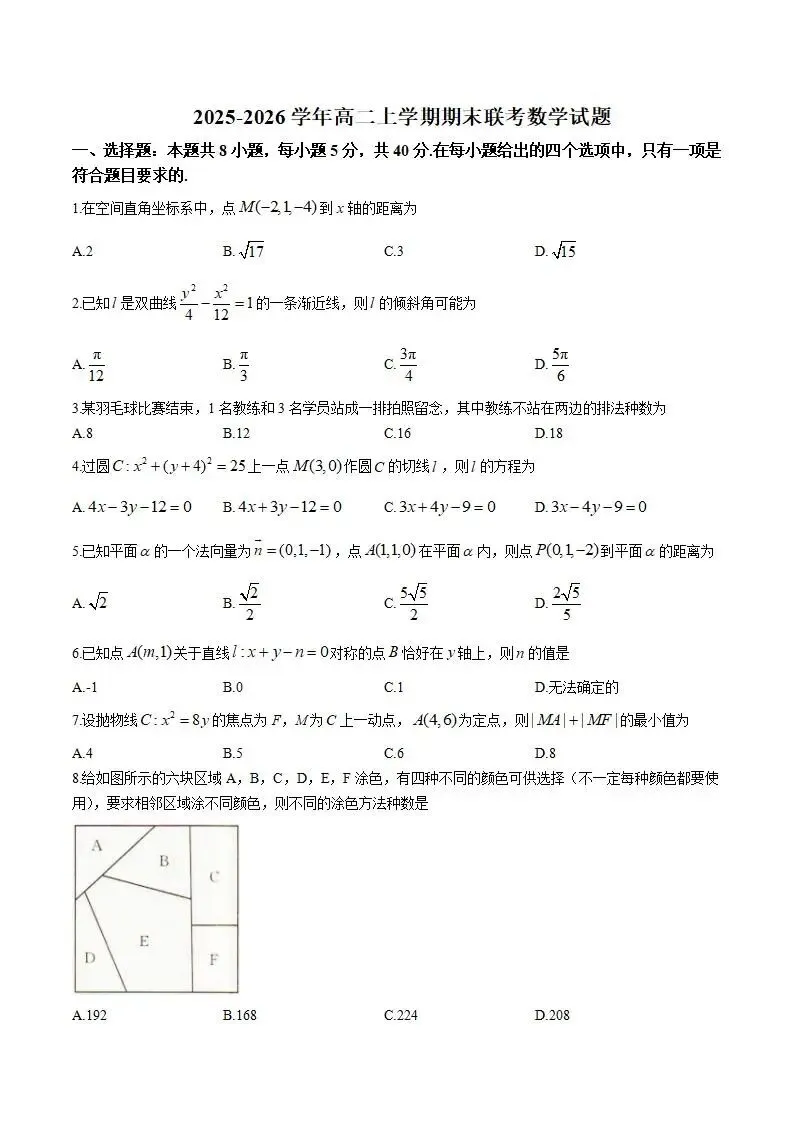 《高中试卷》辽宁省抚顺市六校协作体2025-2026学年高二上学期期末联考数学试卷(含答案)