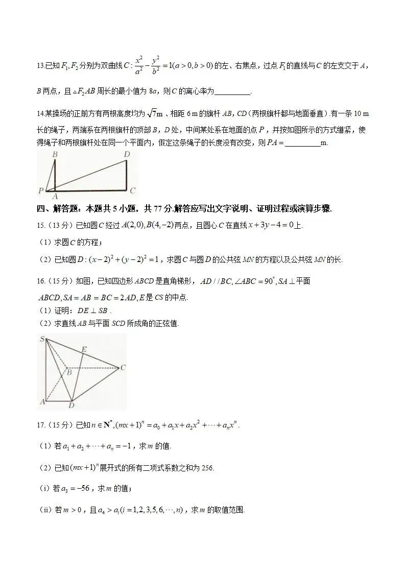 >《高中试卷》辽宁省抚顺市六校协作体2025-2026学年高二上学期期末联考数学试卷(含答案)