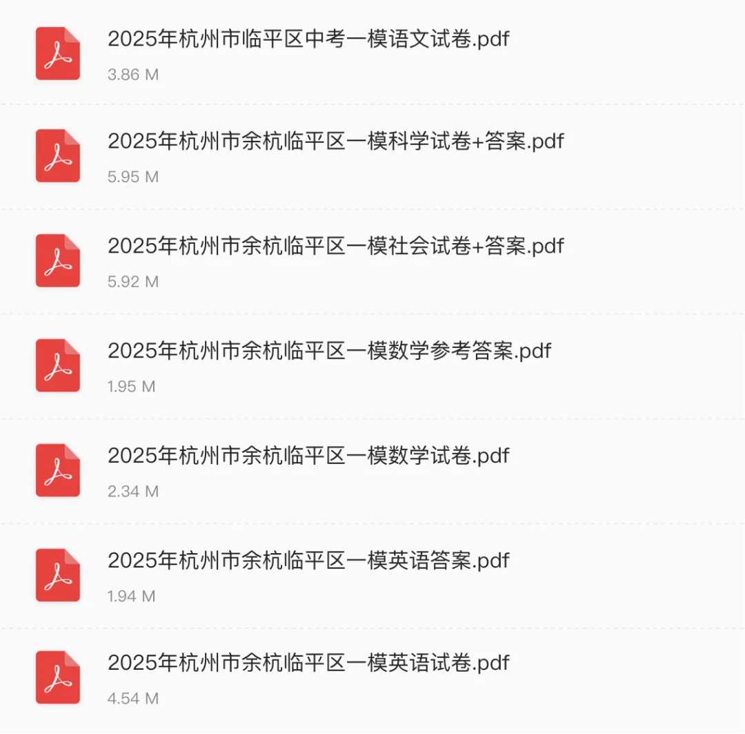 各位初三家长、同学们看过来✨ 备考冲刺关键期,真题加持才高效!今天给大家整理好了2025年杭州市临平/余杭区一模试卷+答案解析,搭配完整详细解析,免费分享给大家~