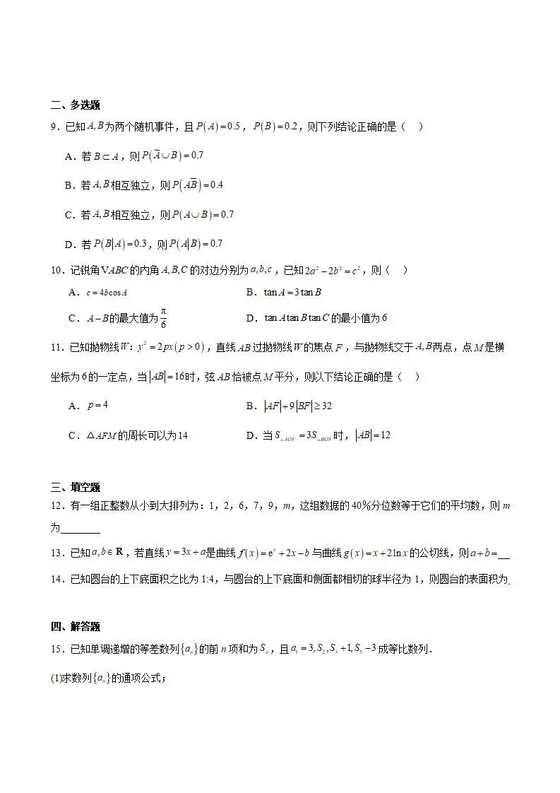 2025年杭州市临平/余杭区一模试卷+答案解析