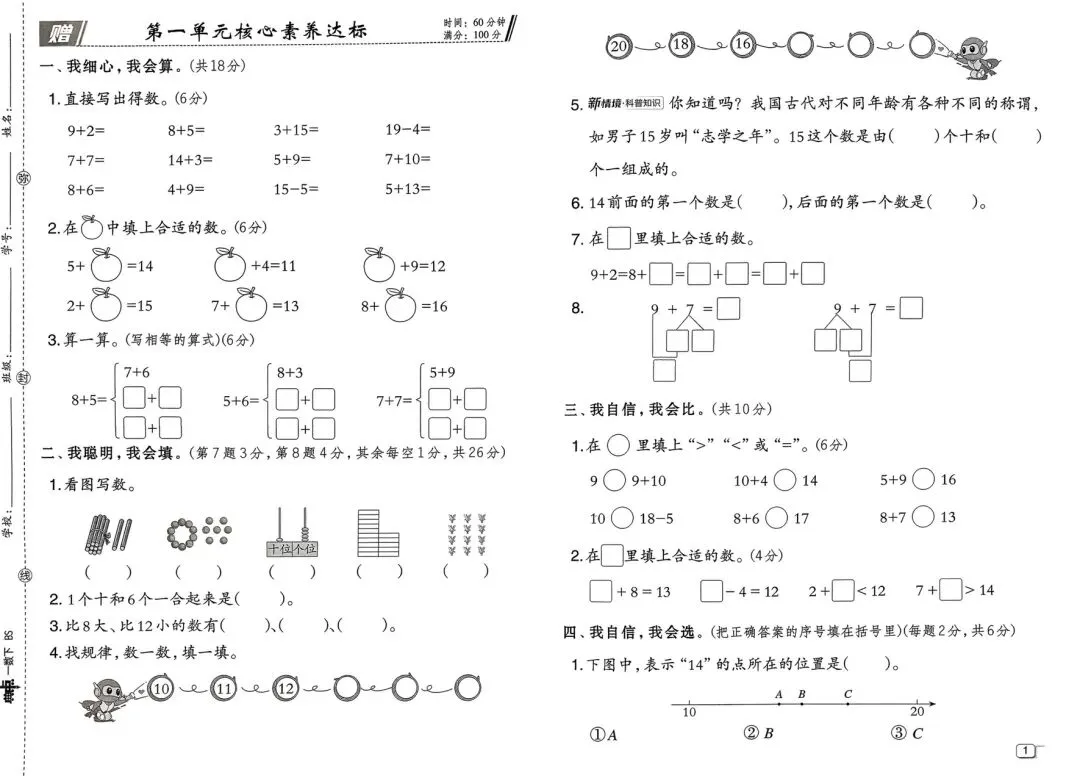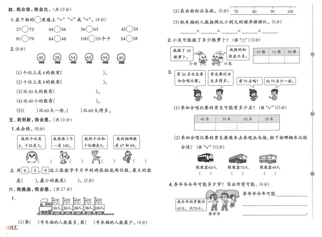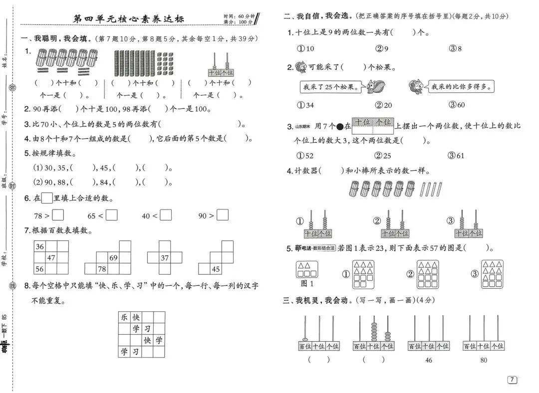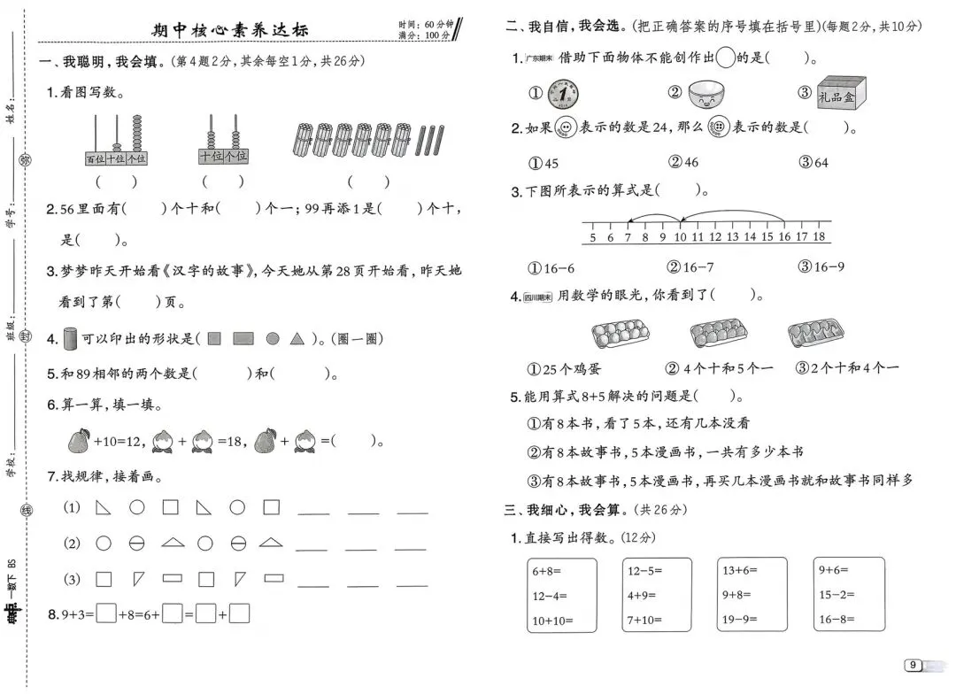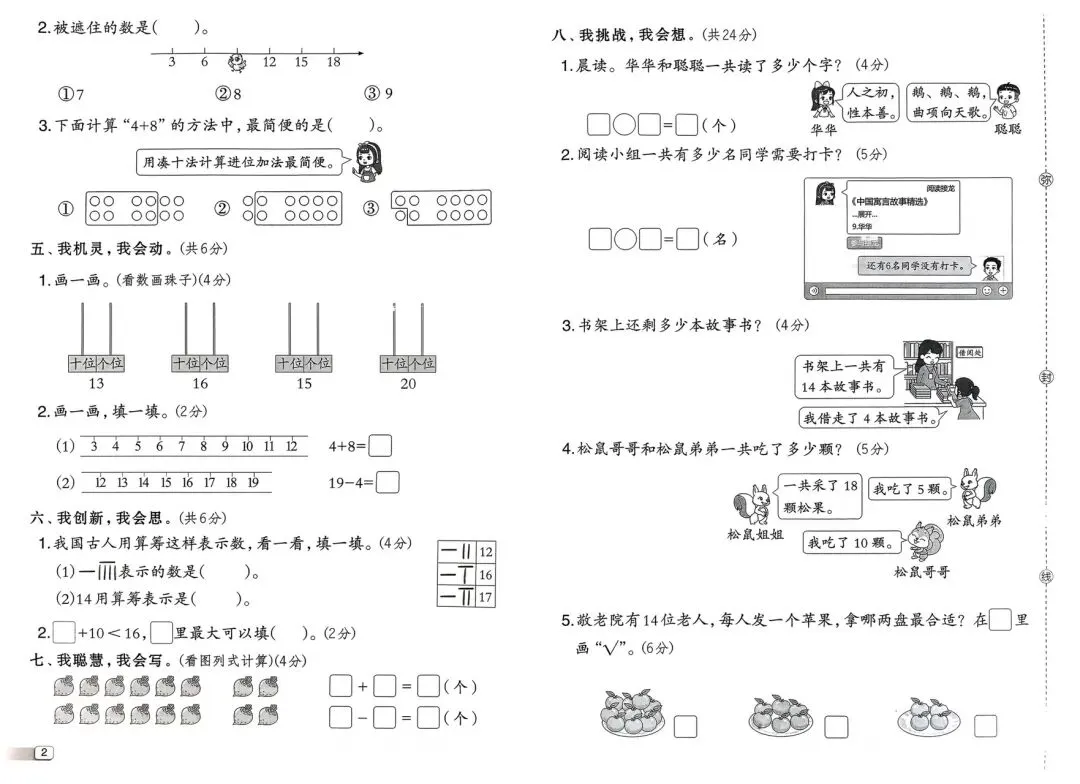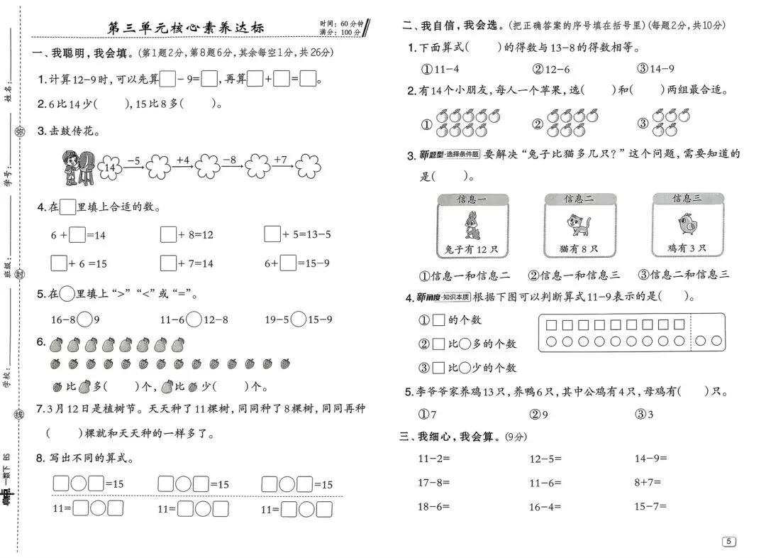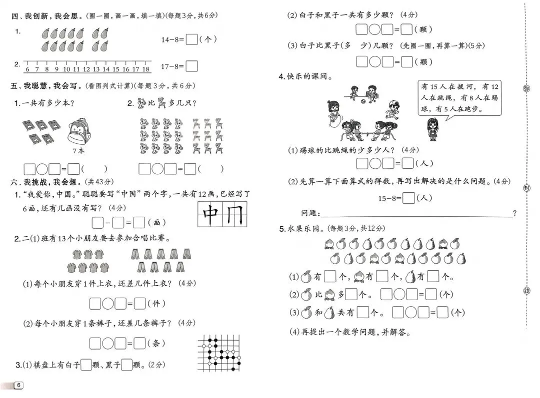 (打印版)一年级数学下册期中试卷附答案,给孩子测一测!