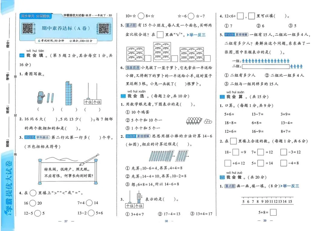 【浙教版】新七年级下册数学期中试卷(含答案+答题卡)完整电子版可打印