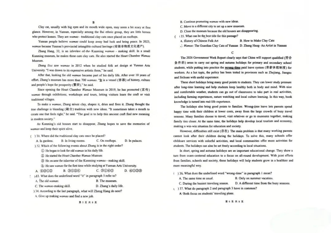 2026年高考数学二模考试,含省份试卷,附答案解析,完整版可打印!