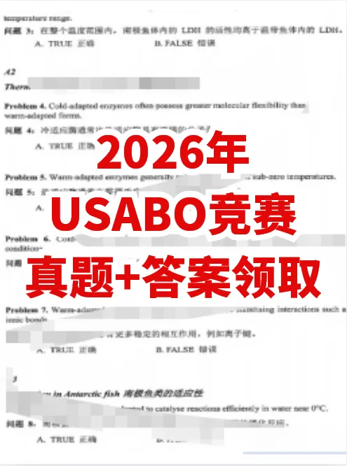 2026年USABO生物竞赛考试已经结束,同学们考得怎么样呀?有需要USABO真题+答案的同学们,可以找我预约领取。抓紧时间,趁有记忆,答案对起来!