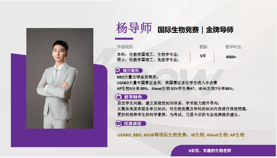 犀牛教育BBO&USABO生物竞赛培训师资都是有几年的教学经验的,也教出过多年金奖,超金奖项学员,教学成果突出。