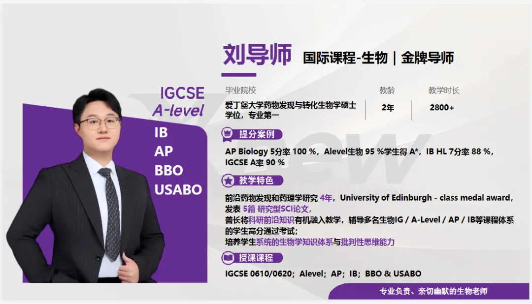 AP Biology 5分率100%,Alevel生物95%学生得A*,IBHL7分率88%,IGCSEA率90%