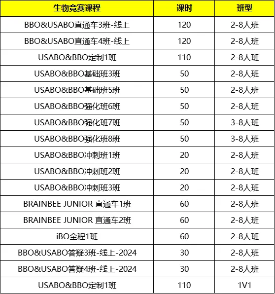 犀牛针对参加国际生物竞赛的同学们开设生物竞赛直通车课程培训,3-6人小班,配有入班测试,根据学生基础匹配合适班型。