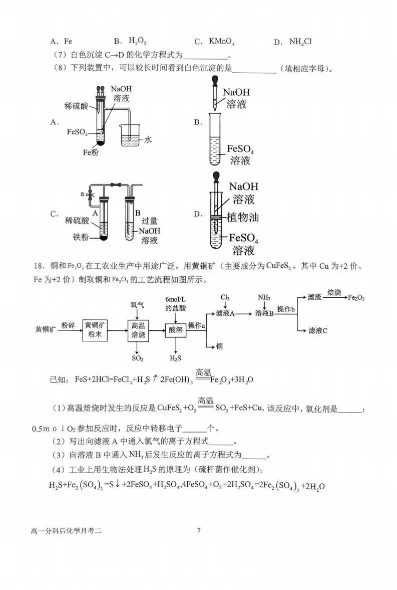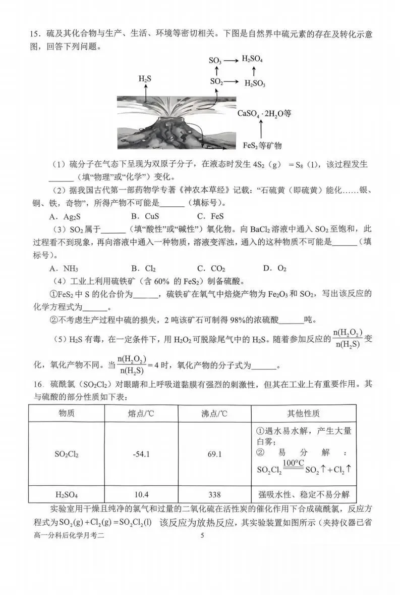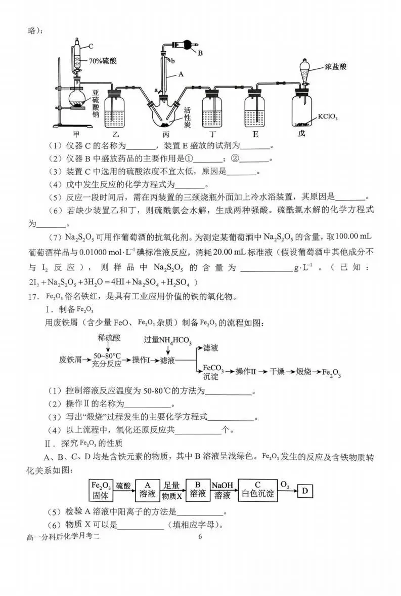 >《高中试卷》南阳市第一中学校2025-2026学年高一上学期分科后第二次月考化学(含答案)
