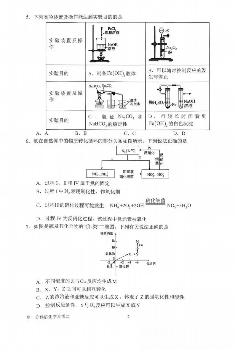《高中试卷》南阳市第一中学校2025-2026学年高一上学期分科后第二次月考化学(含答案)