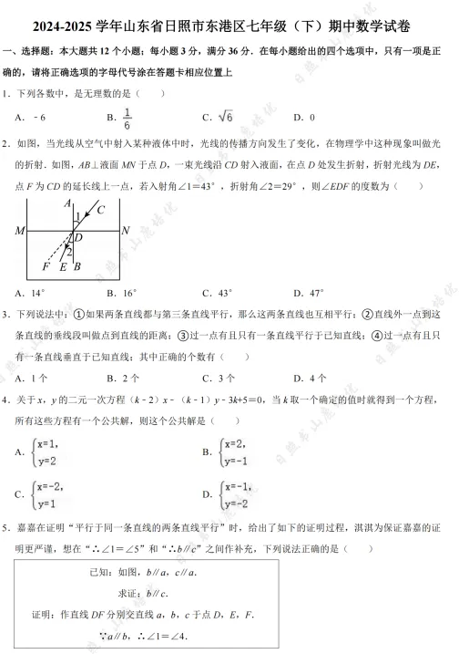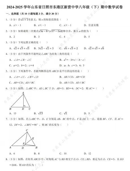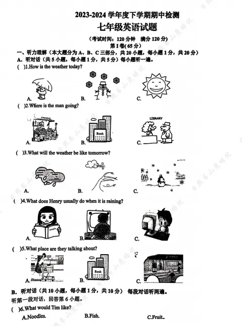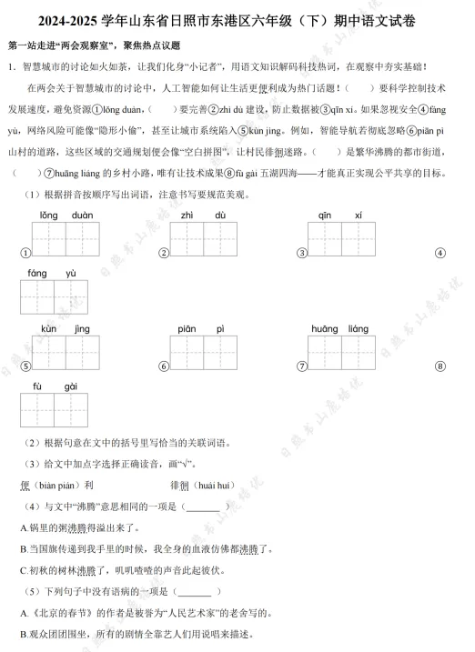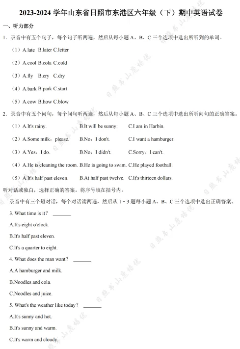 >日照市6-8年级期中考试真题领取