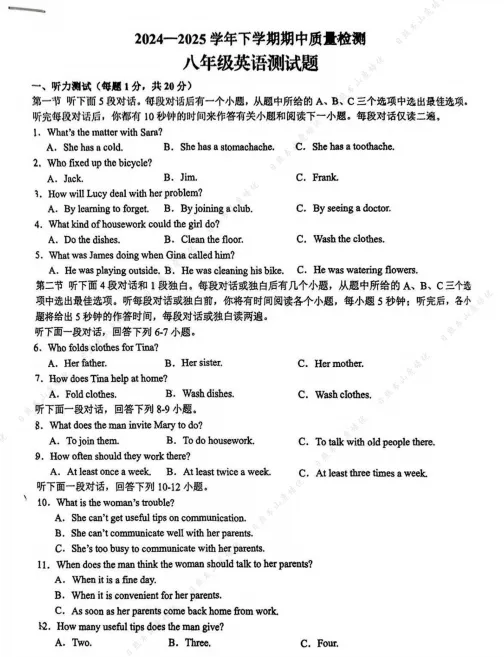 2026春(人教版)八下初二英语期中试卷(多套含听力答案),电子版可打印!