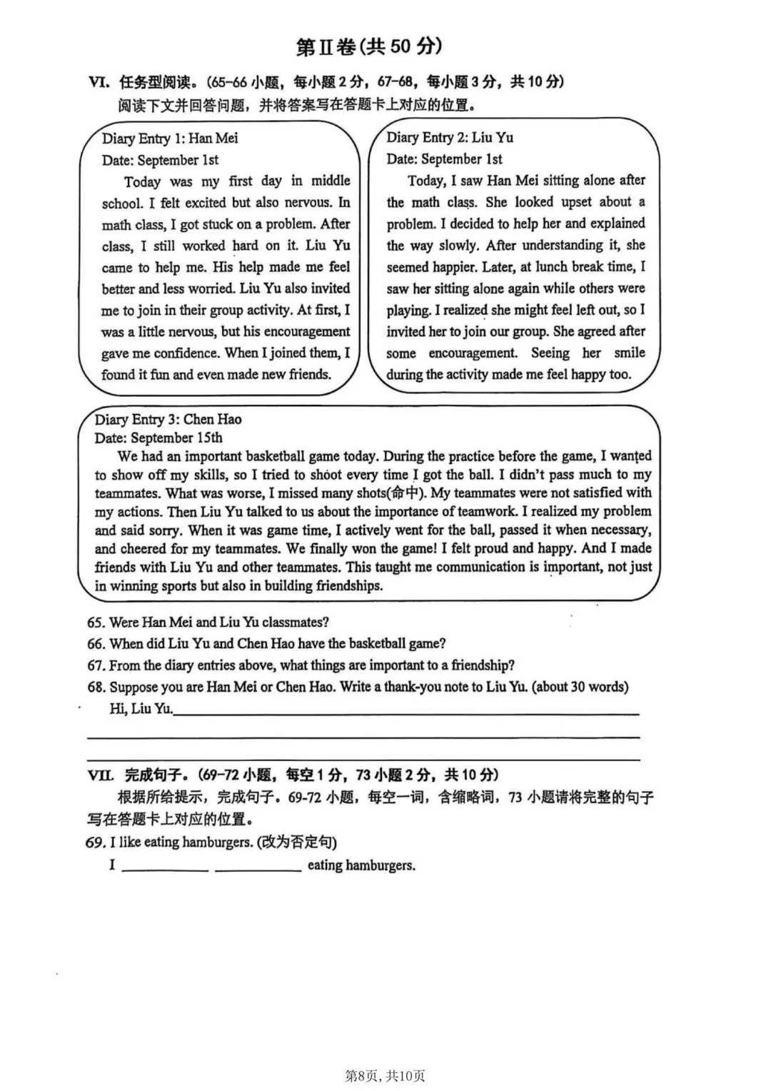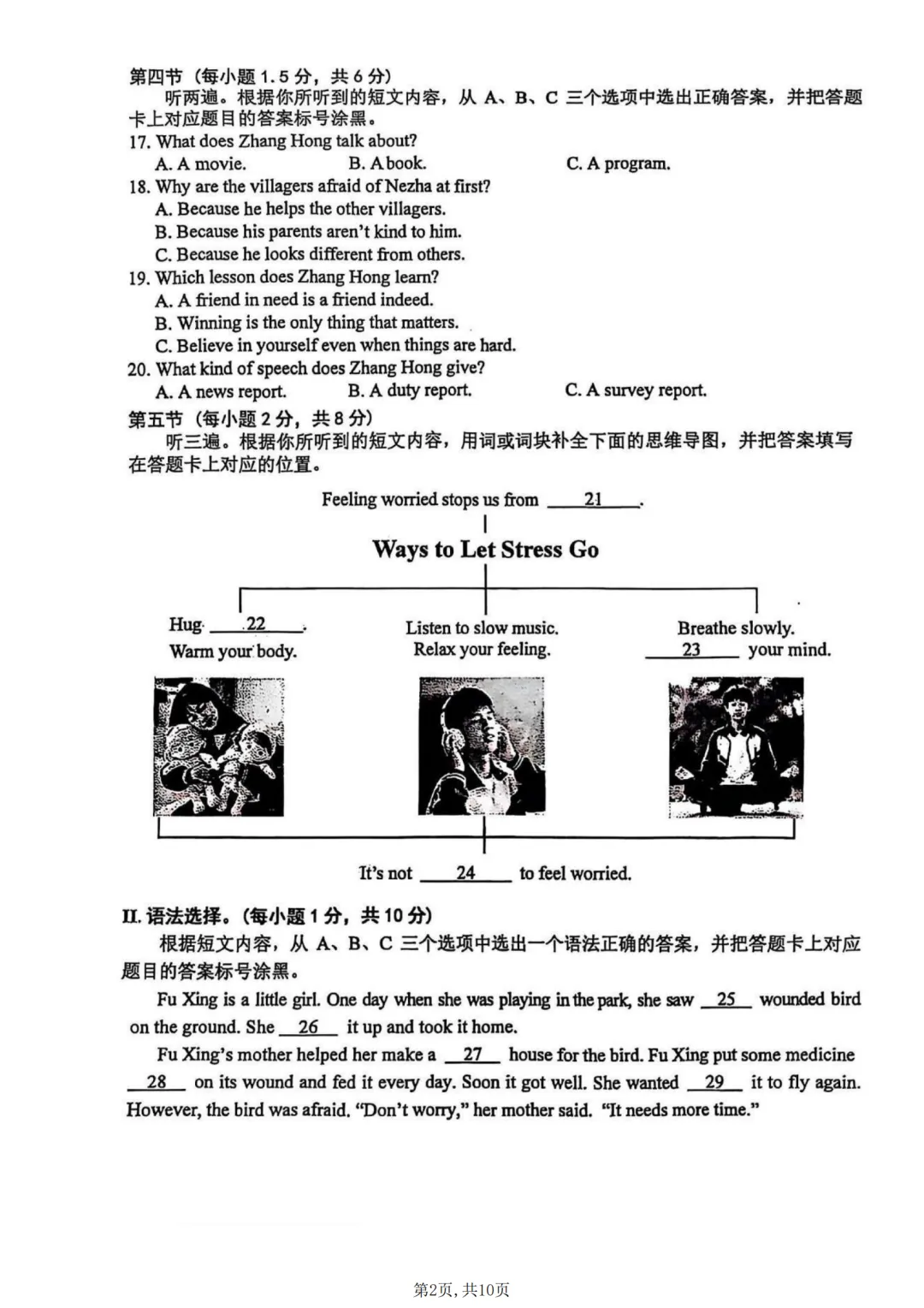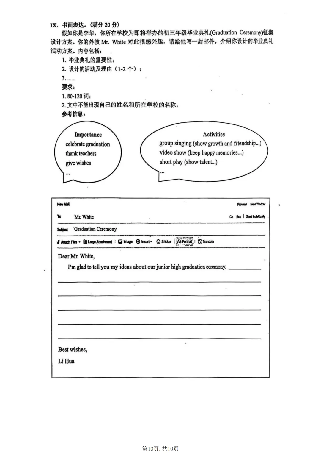 高二||解析!安徽省联考高二4月日语试卷(作文:邮件;信)+听力+答题卡+答案详解及听力原文