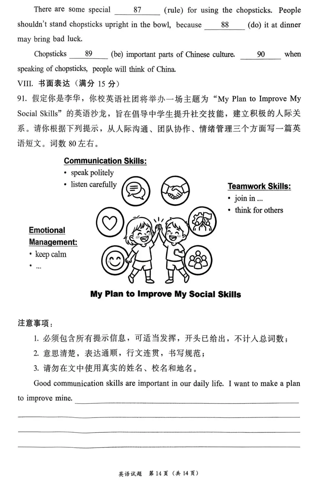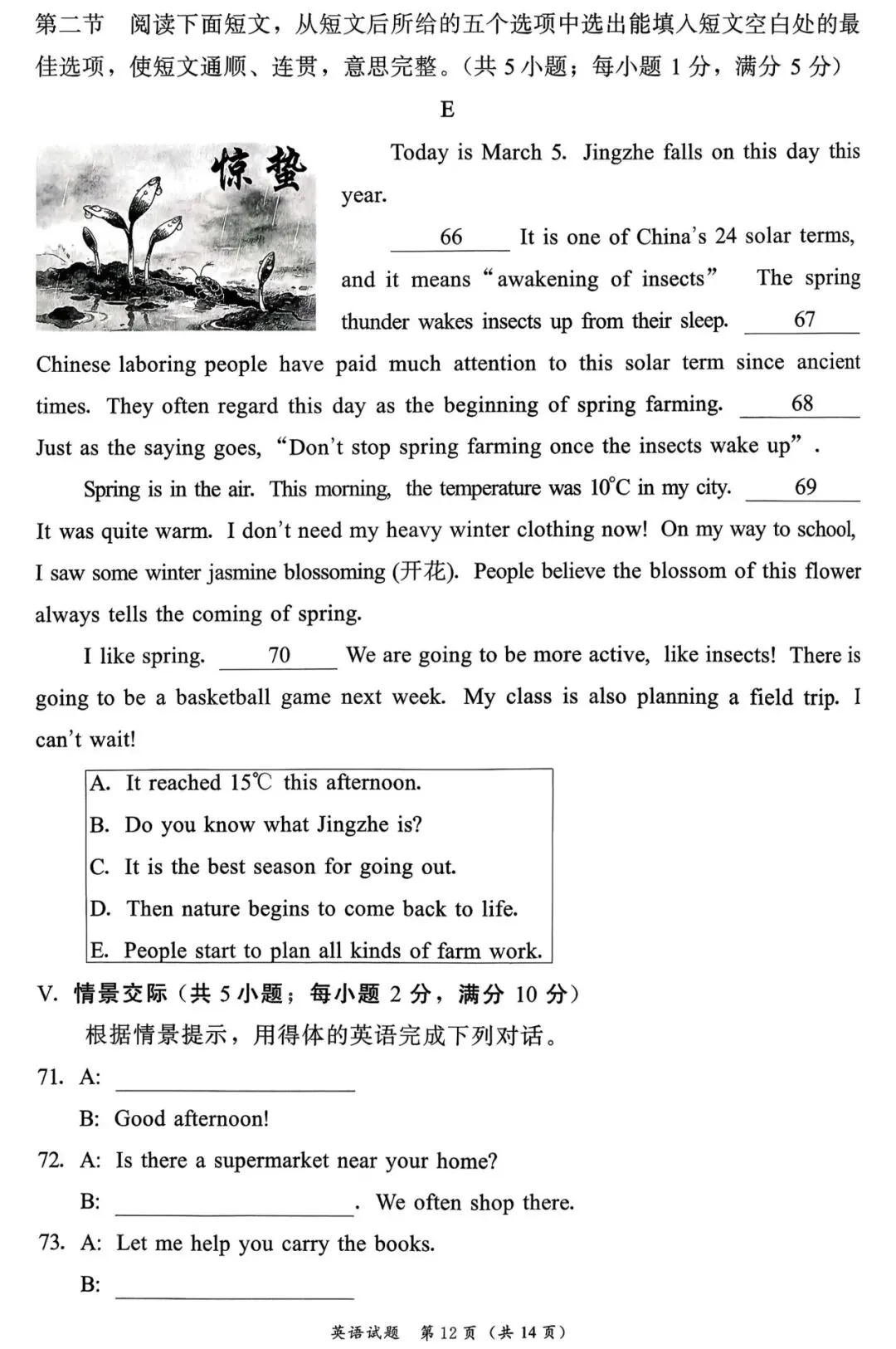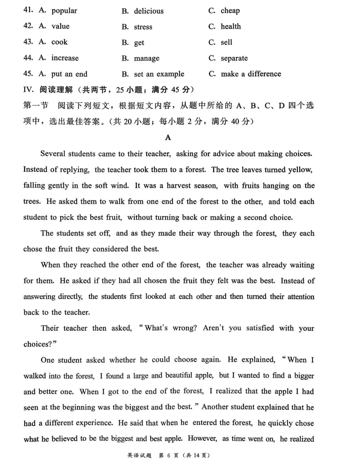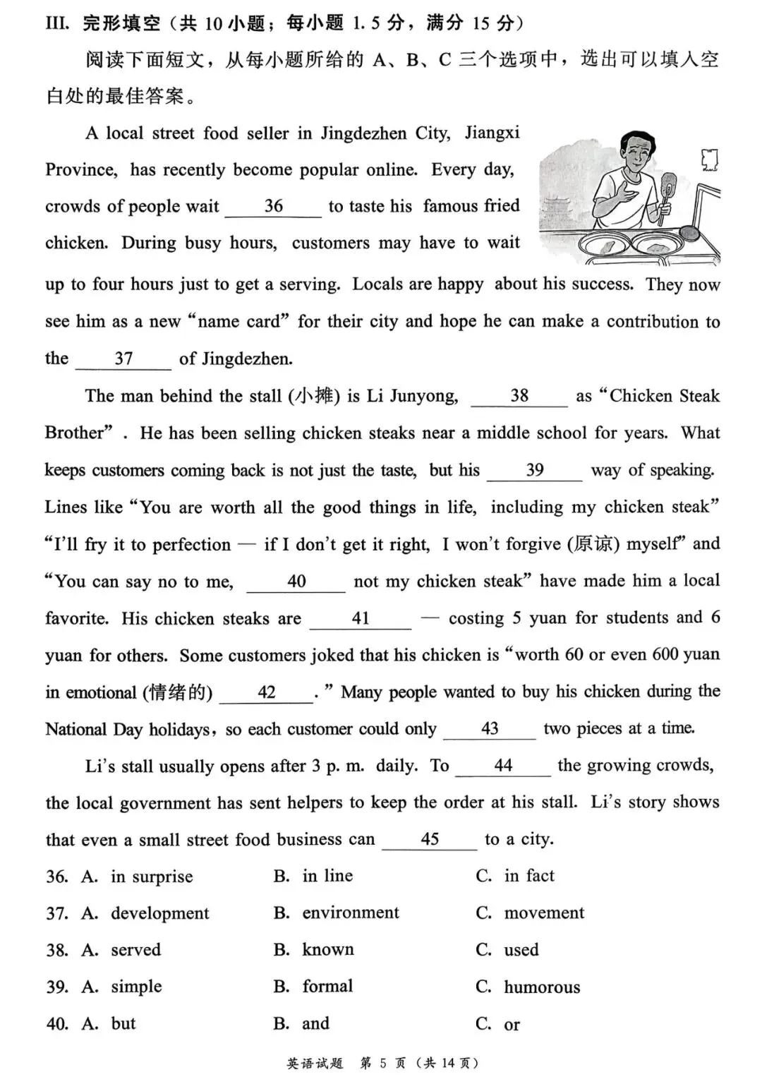 三、完形填空(共10小题,每小题1.5分,满分15分)