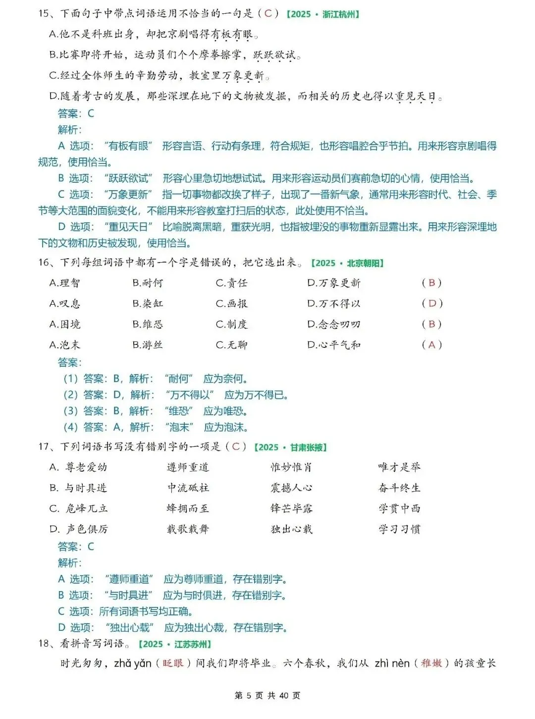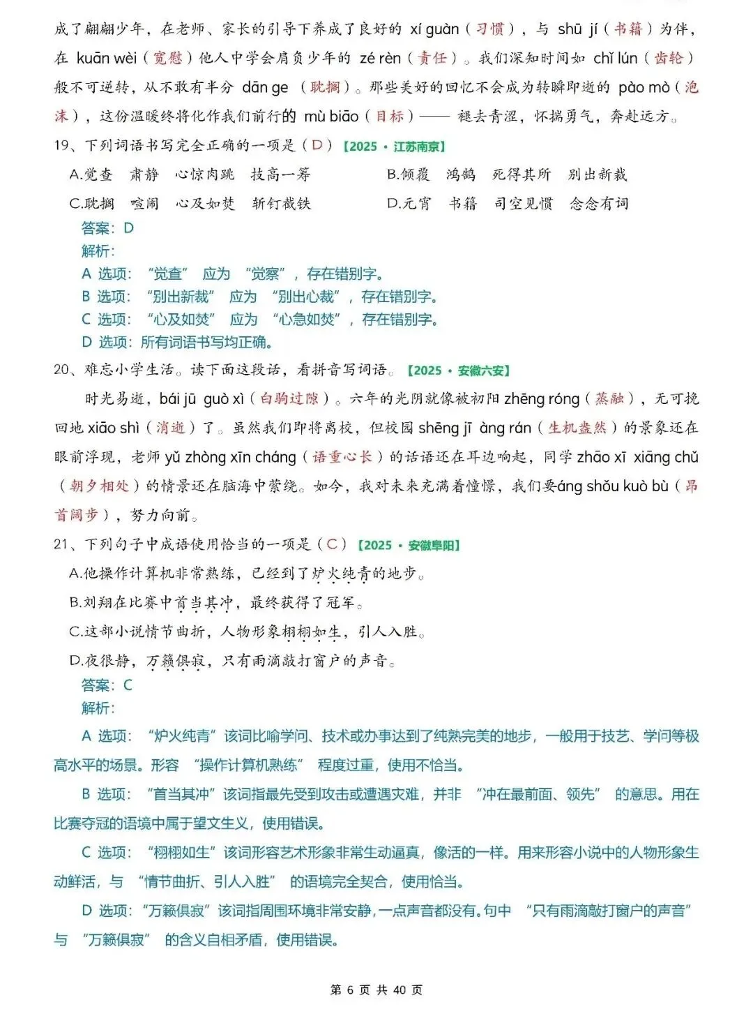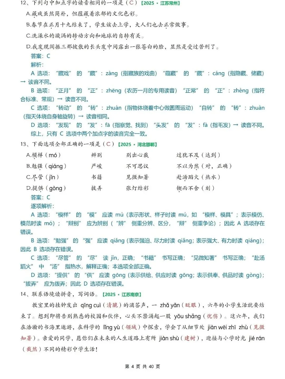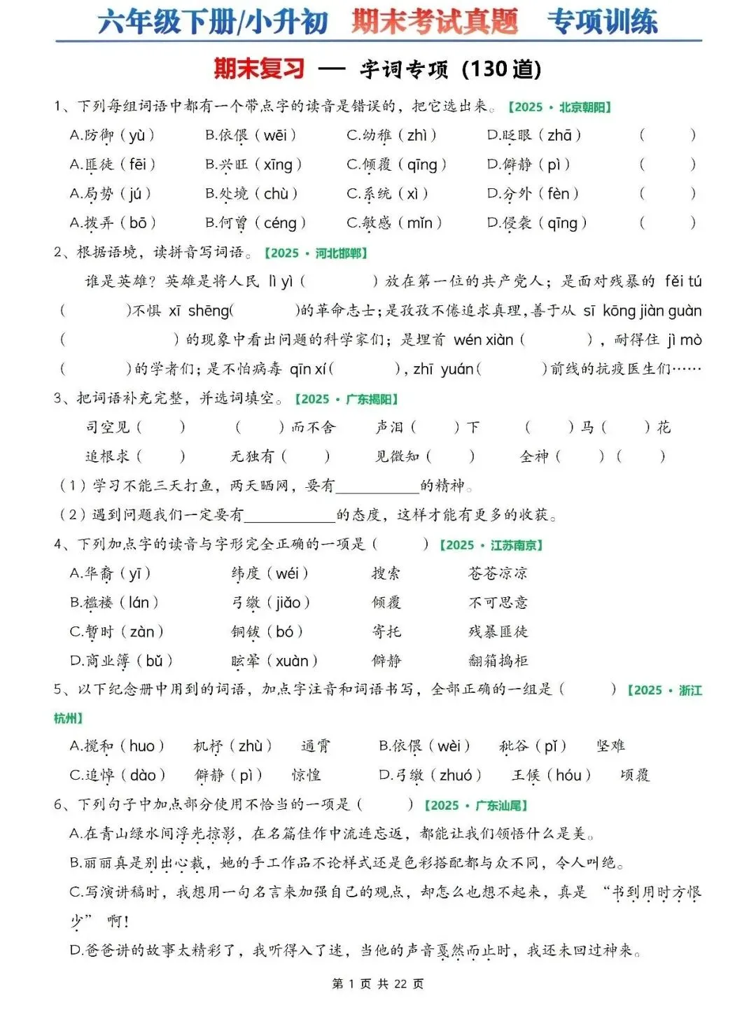 大家好,我是小敏妈妈,今天为大家分享的是;2026小学语文六年级小升初毕业考试真题专项训练(含字词、古诗名言选择题、按课文内容填空、改写句子、快乐读书吧等)有答案,可打印