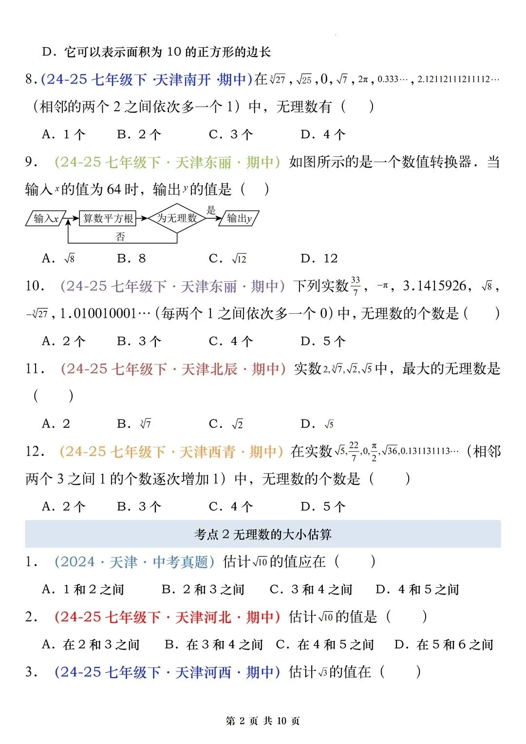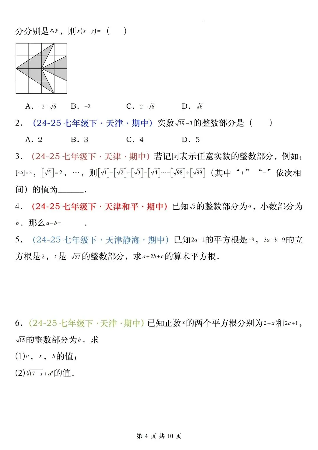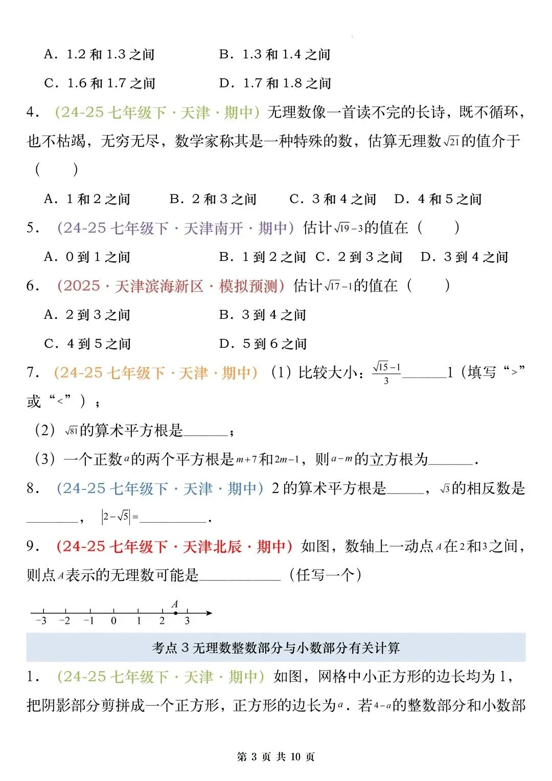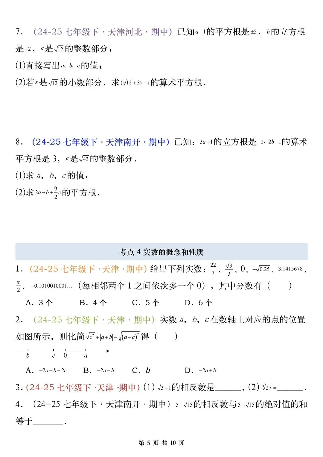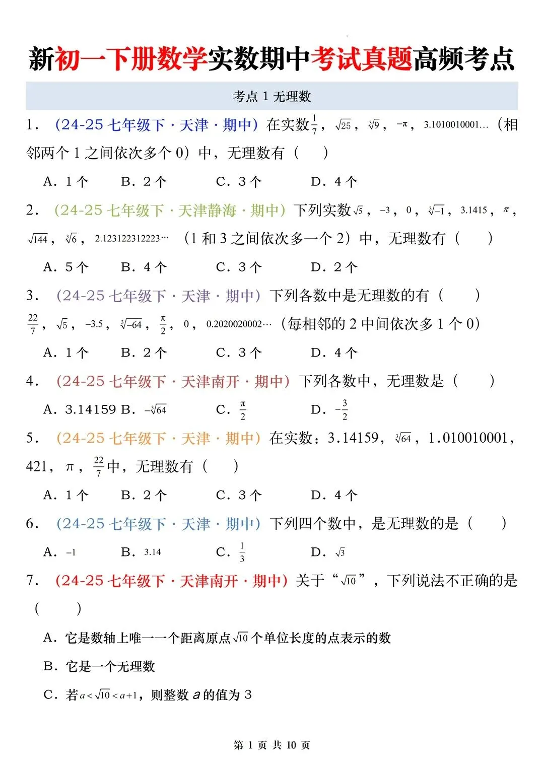 新初一下册数学 期中考试 真题高频 七年级下册数学 实数重点