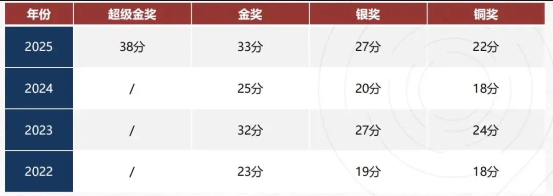 USABO竞赛中国区分数线常年高于全球平均水平,犀牛教育整理近4年USABO获奖分数线,为2026年USABO考生估分提供参考:
