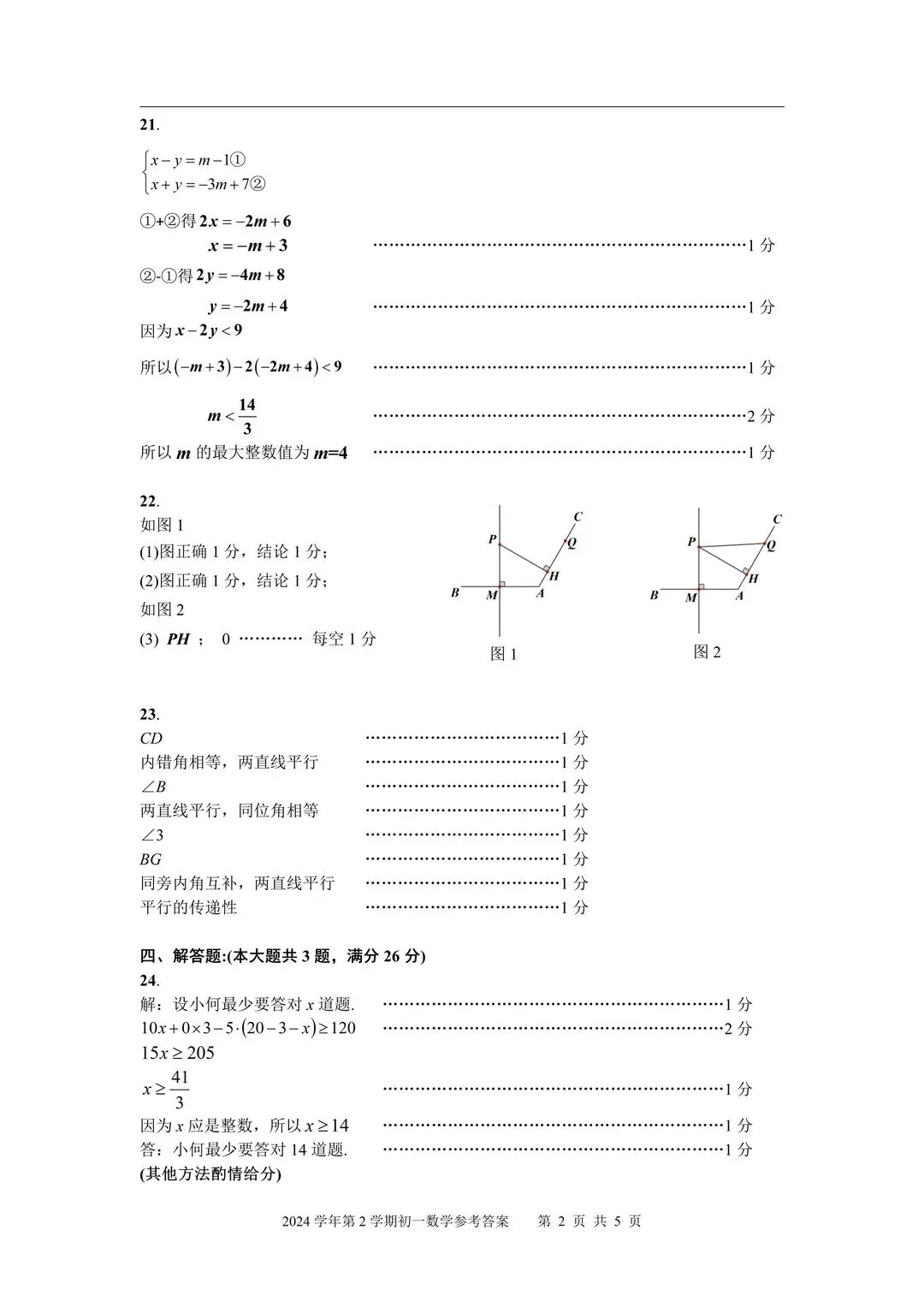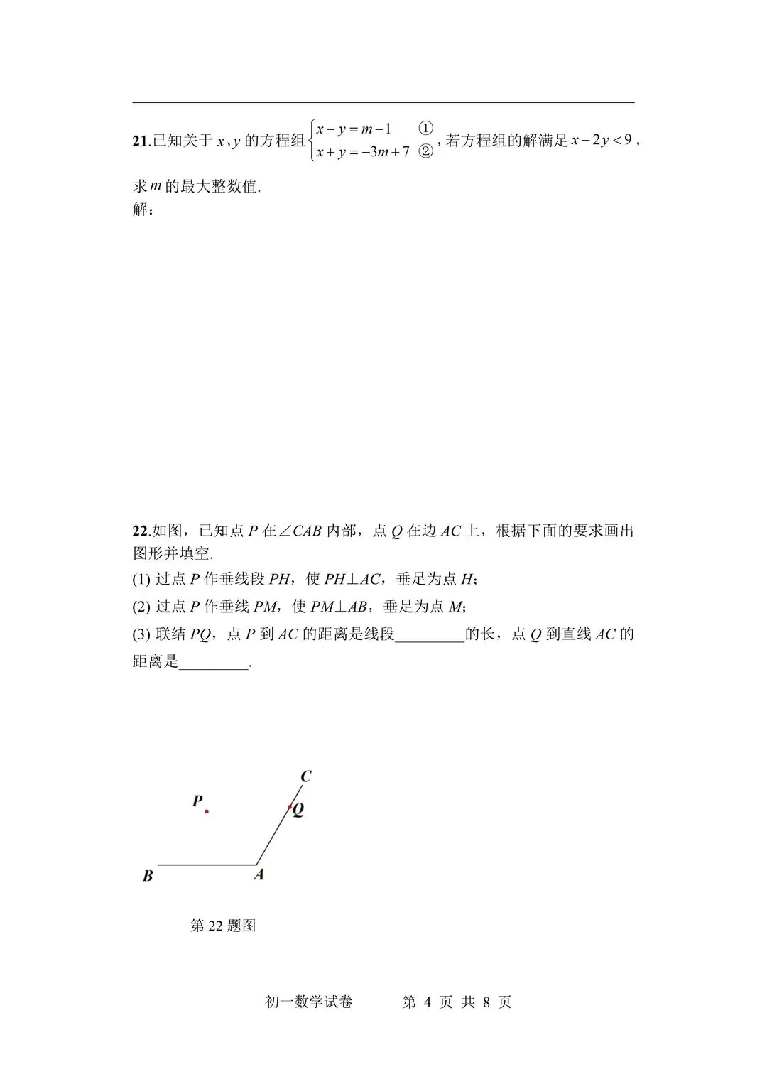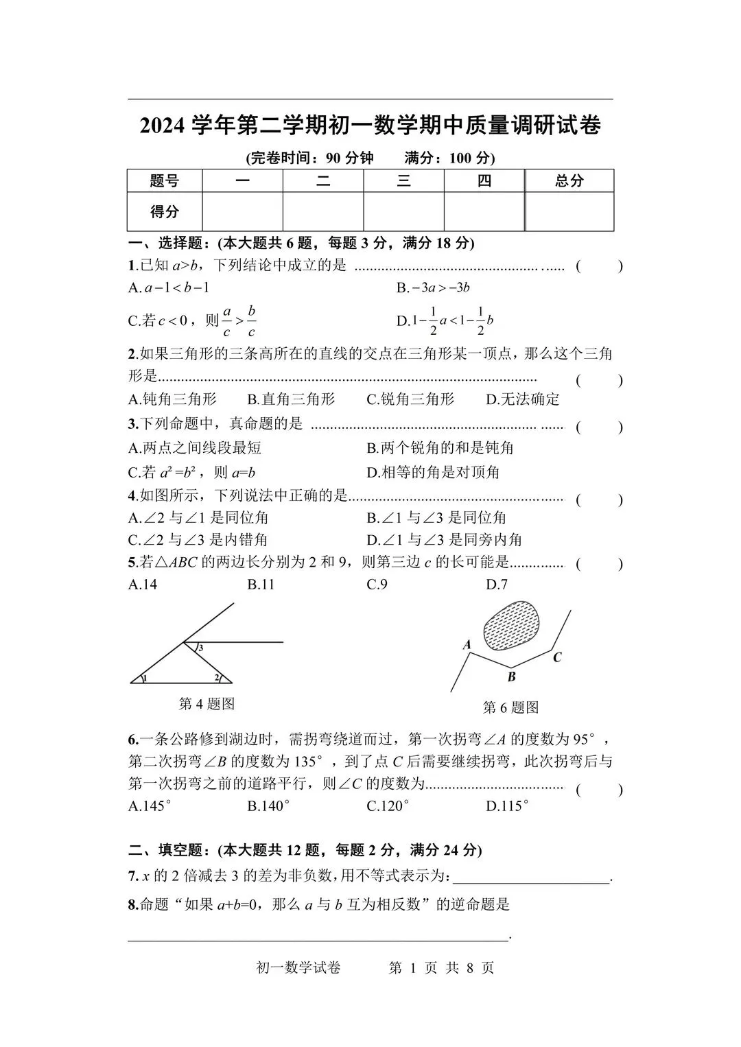 上海2024学年七年级数学第二学期期中考试,仅供大家参考。适合在读的七年级所有学生初中数学 压轴题 。试卷 中考数学 数学作业 数学学习 期中