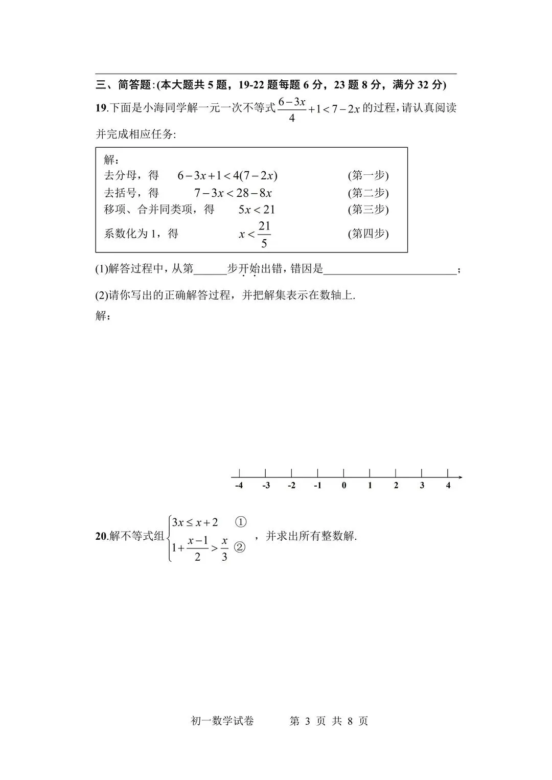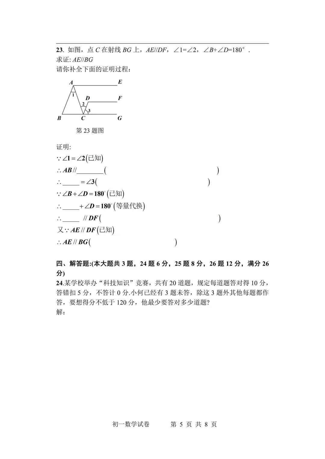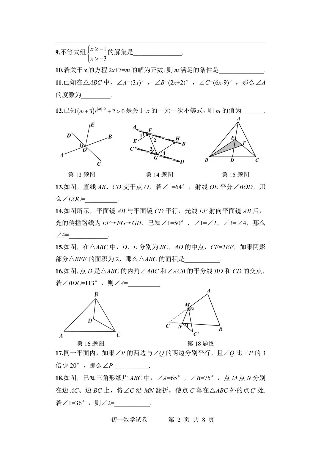 上海2024学年七年级数学第二学期期中考试,仅供大家参考。适合在读的七年级所有学生初中数学 压轴题 。试卷 中考数学 数学作业 数学学习 期中