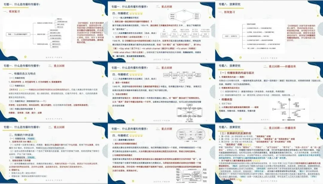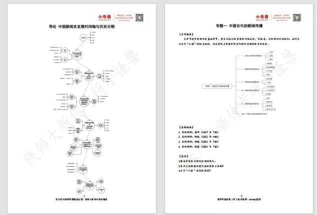 这些笔记并非简单对参考书抄书式整理,而是包含了真题分析、论文延展、书目串联、知识解析、规律总结……每章节还针对陕西师范大学新传考研配备了章节思考+思维导图+真题回顾+考情分析+考点链接。