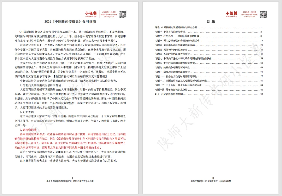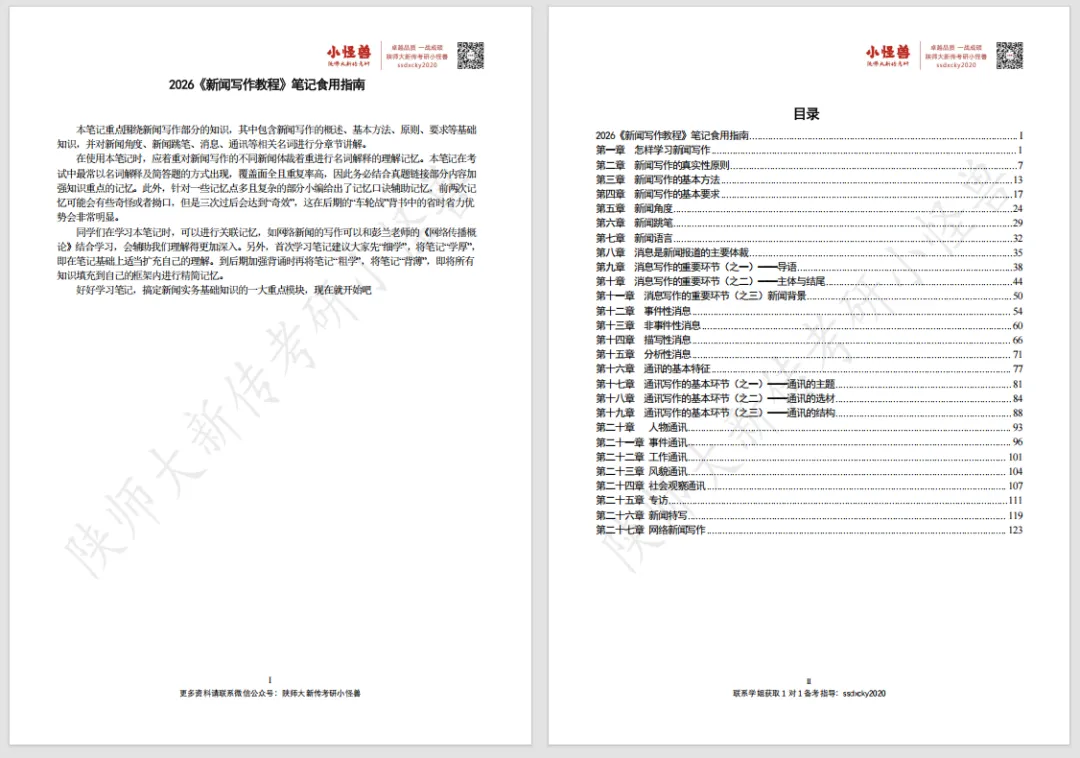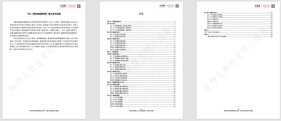 注:笔记是2027陕师大新传考研小怪兽全程班上课讲义,报名全程班邮寄全套笔记。